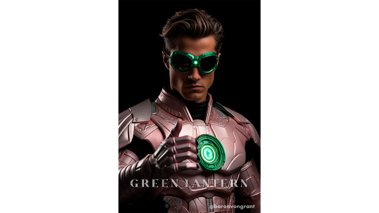 La elección de tono rosado para Linterna Verde fue el golden rose, porque claro es lo que se acomoda mucho mejor a su armadura y personalidad.