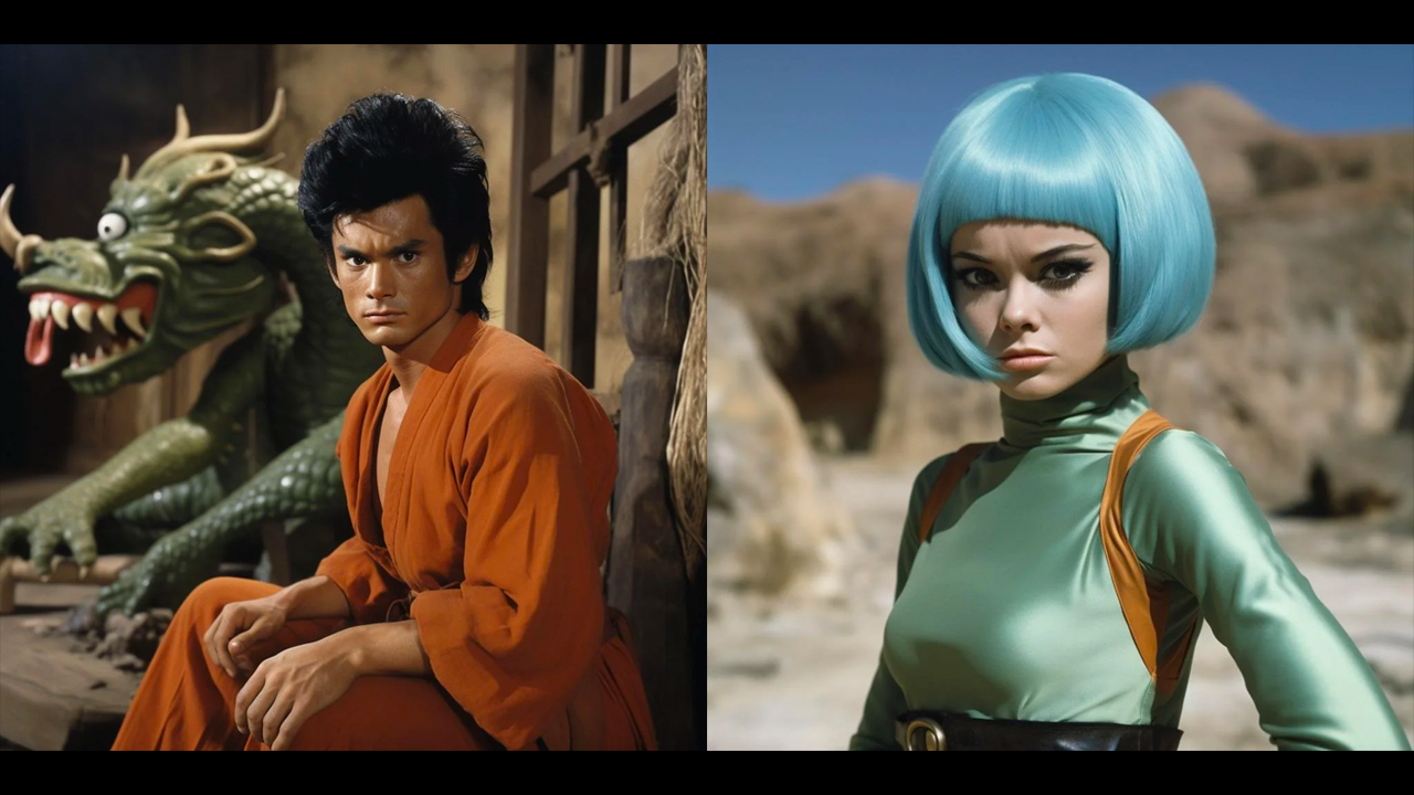Eventualmente, estos dos personajes se convertirían en una pareja y juntos tendrían a una pequeña niña. Con las pecas alineadas en la frente, además del traje de color naranja, la IA hizo un buen trabajo al representar a Krillin como si hubiera salido unas décadas atrás. En cuando a la Androide número 18, el peinado al estilo de Austin Powers delataría que la serie fue hecha en otros tiempos.