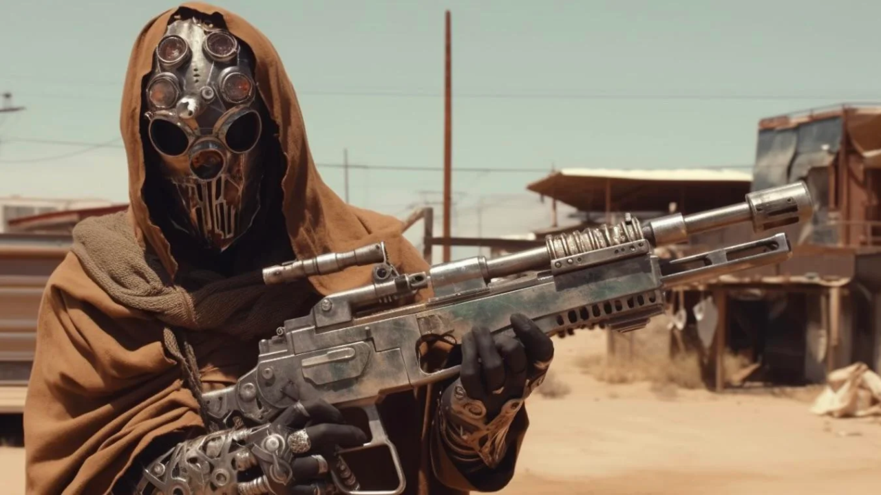 Boba Fett (interpretado por Temuera Morrison en la serie El libro de Boba Fett) emerge como un guerrero formidable, portando armas de fuego y preparándose para el inminente combate. Su armadura, que resuena con ecos de la galaxia distante de Star Wars, toma un tono más sombrío y perturbador en este nuevo universo. Ataviado con su icónico casco, Fett oculta su rostro tras una máscara misteriosa, su presencia emana determinación y peligro en cada paso que da.