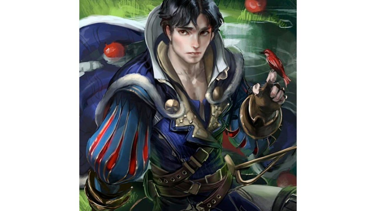 Espejito, espejito... Si en Blanca Nieves y los siete enanos fuese este joven la causa del enojo de la Reina Malvada, la respuesta del espejo ante la inminente pregunta de la reina sería esta imagen del príncipe. Tan blanco como la nieve, usando los colores azul y rojo en su vestimenta pero rodeado del peligro de la manzana envenenada, así lo imagina el artista.