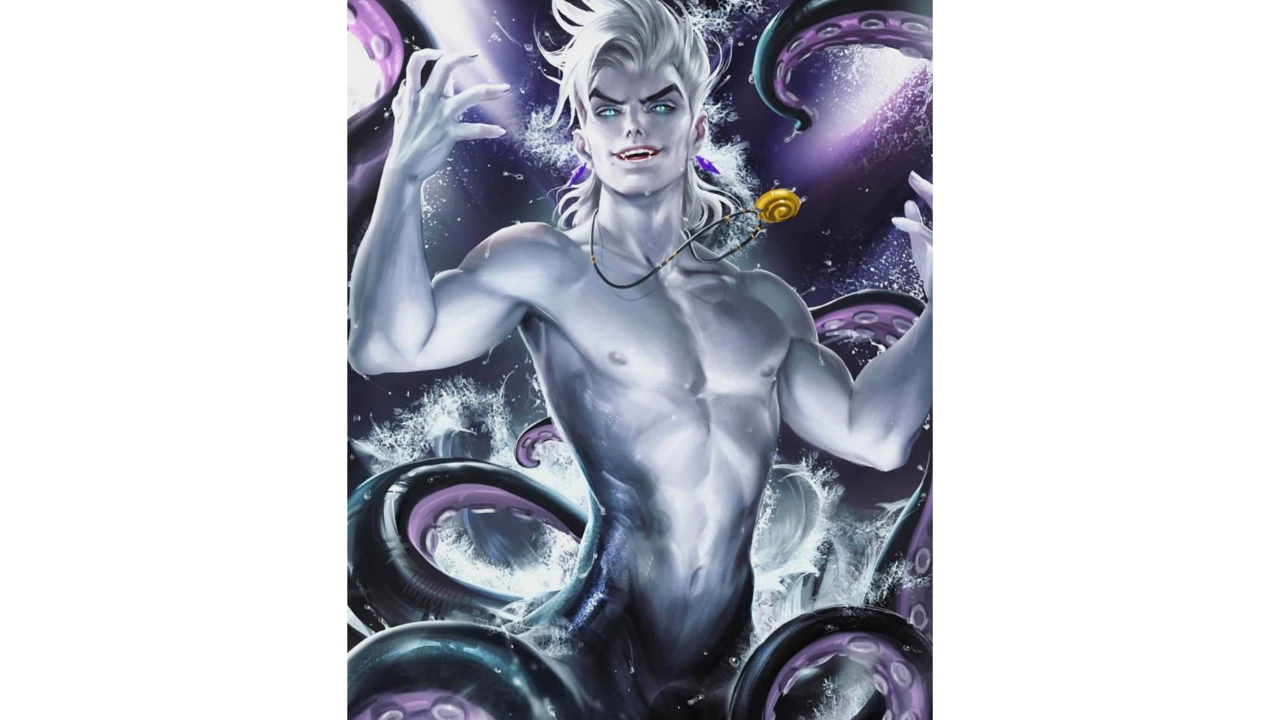 Vaya impresionante cambio que tendría la versión masculina de Úrsula. La bruja del mar que hace un trato con Ariel en La Sirenita casi parece una versión pálida de un villano de anime. ¿Puedes imaginarlo controlando el agua del océano y usando su magia tras interpretar Pobres almas en desgracia?