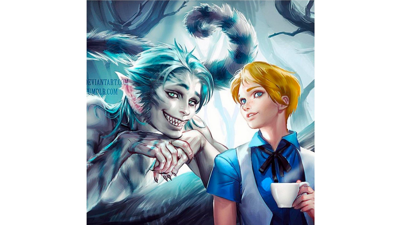 Alicia en el país de las maravillas nos regaló la historia de una joven soñadora que es acompañada por el Gato de Cheshire y su característica gran sonrisa. Esta reimaginación de ambos personajes parece combinar un poco la versión de Disney por el atuendo de Alicia con la de Tim Burton en 2010 por los colores del gato. ¿Qué te parece?