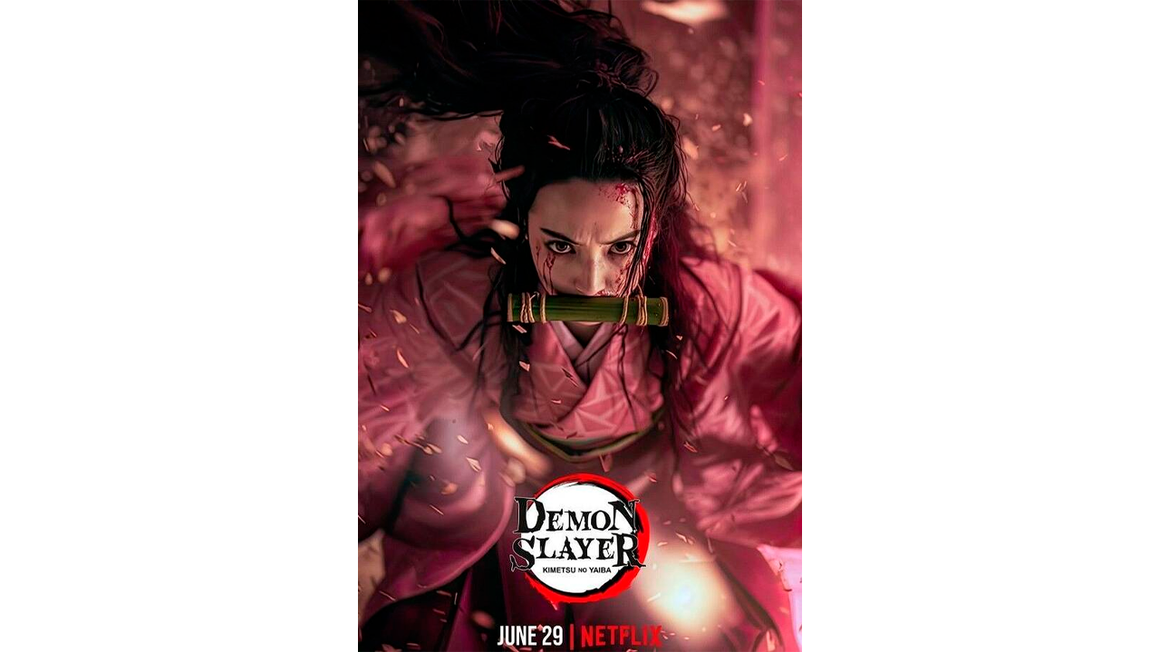 La humana-demonio más querida por todos. En este póster Nezuko nos recuerda mucho a la primera ocasión que la vimos usar su técnica de sangre justo en medio de la batalla contra Rui. Nos encantaría ver este épico momento en live-action ¿y a ti?