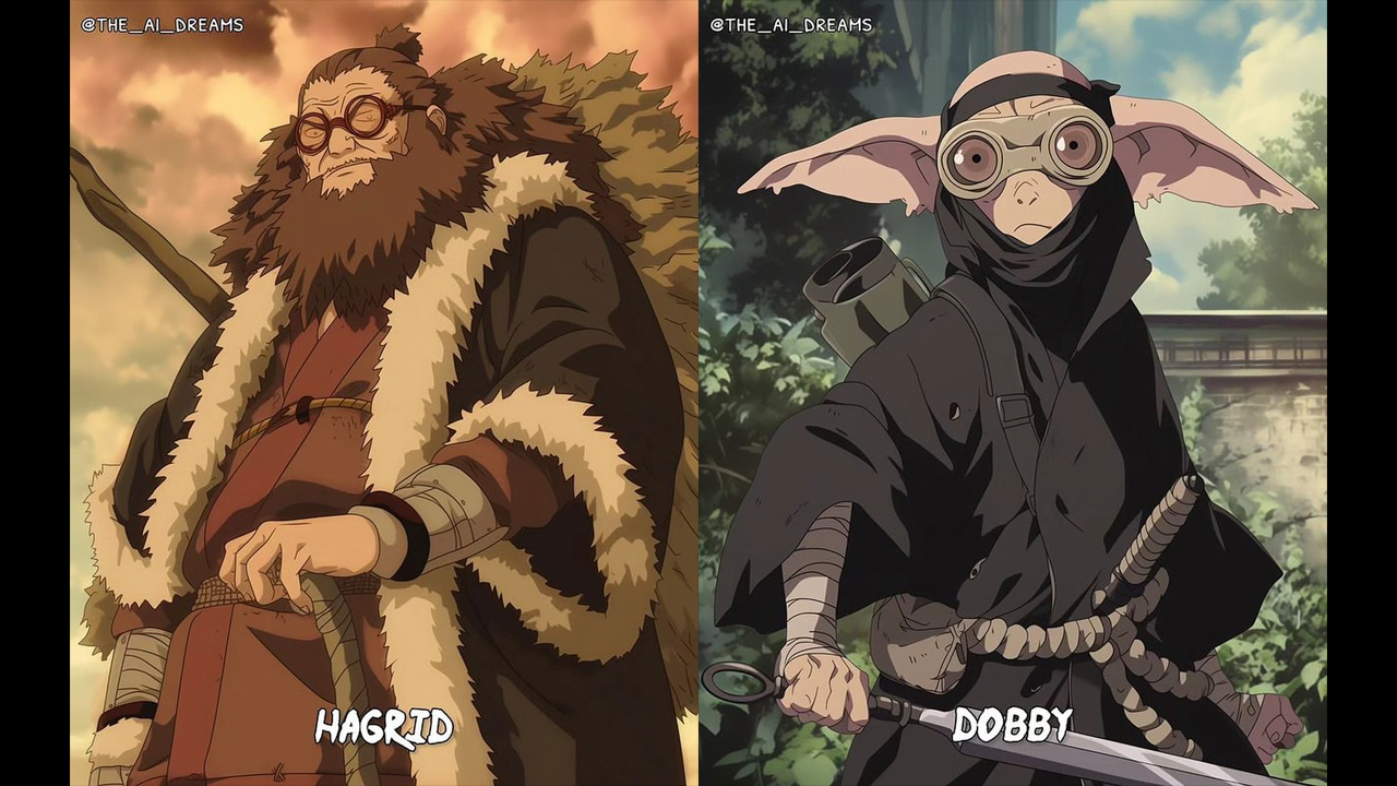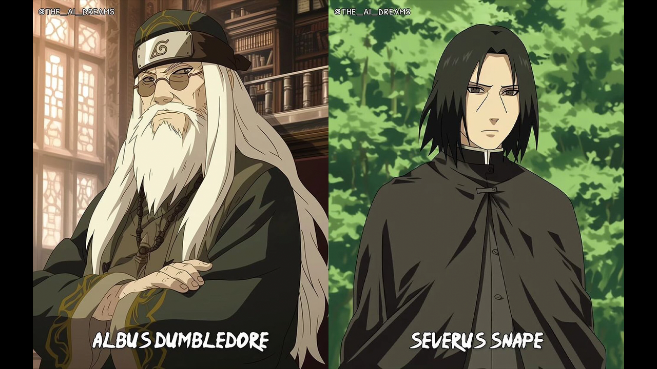 En el mundo de Naruto, Albus Dumbledore tendría todo el estilo de un ninja. Lo más sorprendente es que el poderoso mago se parecería mucho al maestro Roshi de Dragon Ball. Junto a él se encuentra Severus Snape, quien sin importar el universo en el que esté, siempre tendrá una mirada intensa que denota tristeza por la muerte de Lily Potter.