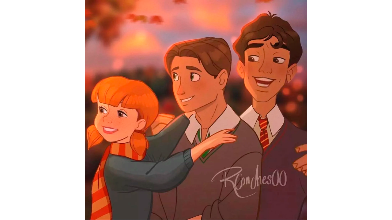 La ilustradora española Rocío Conches trajo esta idea a la vida a través de sus dibujos ilustrando a algunas de las parejas y familias más icónicas de los libros de J.K. Rowling con personajes de películas animadas por la casa del ratón. A través de su cuenta de Instagram @rconches00, compartió cómo se verían Harry y Cho, la familia Malfoy y muchos más con sus equivalentes en dibujo; aquí te dejamos las imágenes.