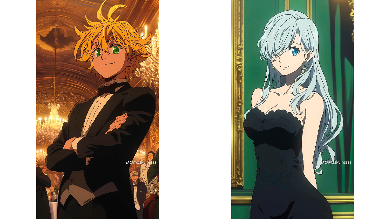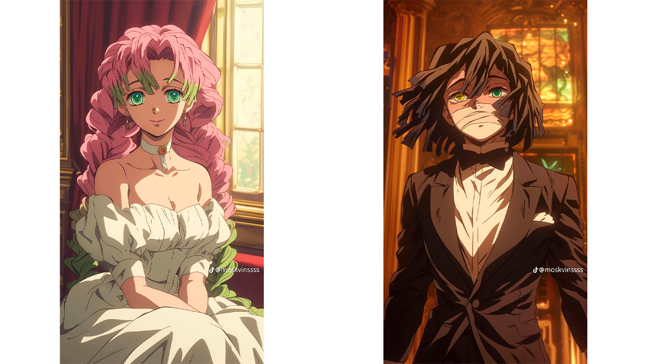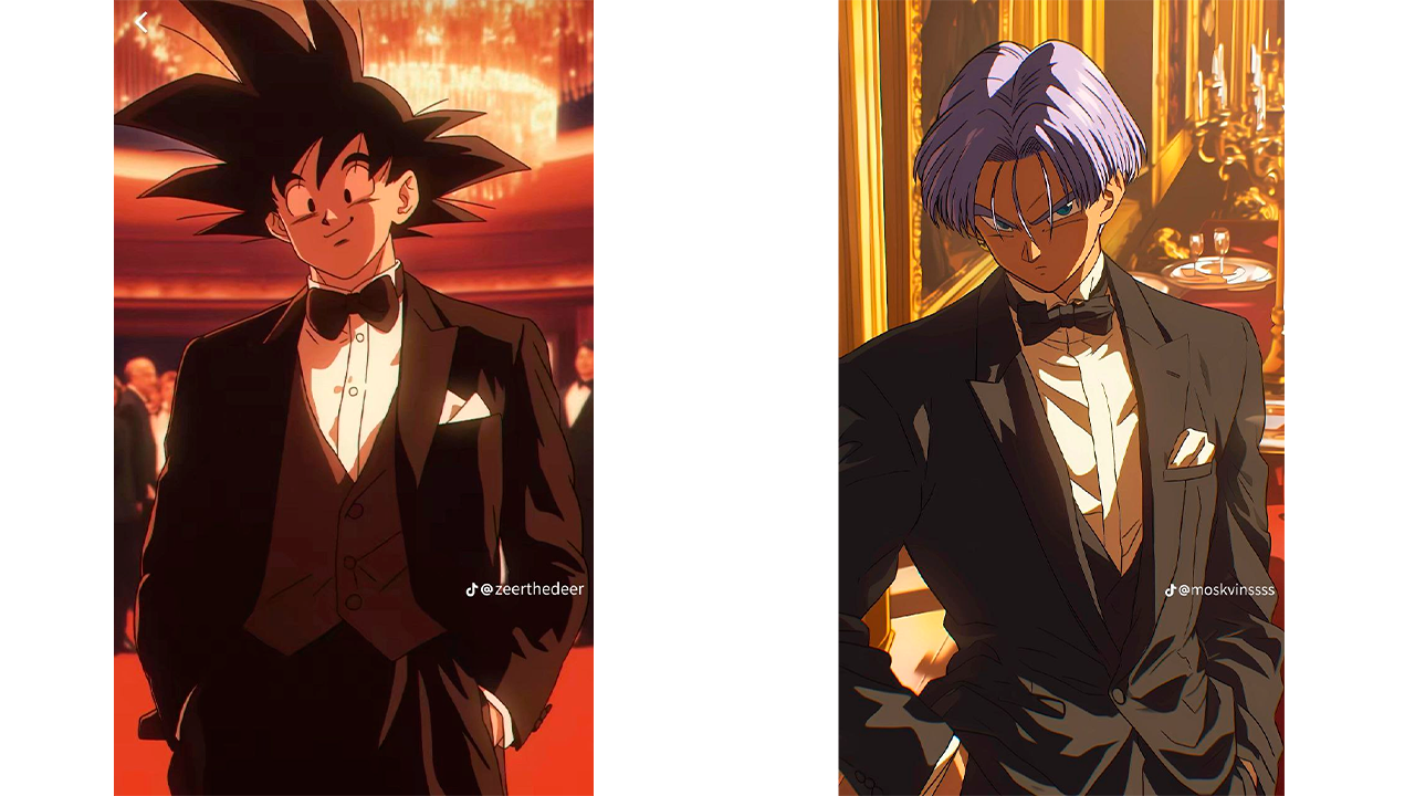 Principalmente @moskvinssss se ha dedicado a reunir en su cuenta de la red social, varias imágenes generadas con IA que visten a personajes de Demon Slayer, Dragon Ball Z y más como si acudieran a un evento de noche muy importante desde una graduación, la entrega de los Anime Awards (en los que Jujutsu Kaisen se llevó el premio a Mejor anime) o los Oscar 2024. Las siguientes imágenes son algunos de los resultados.