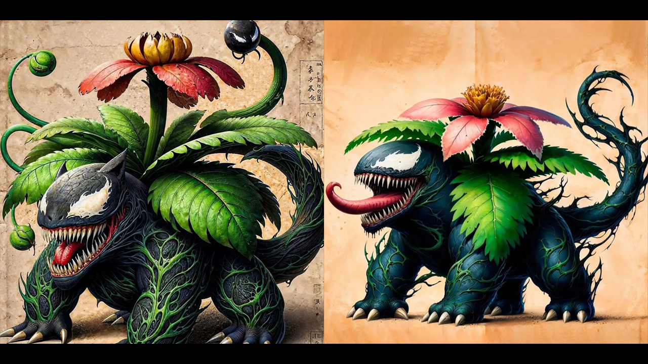 La primer víctima fue Venusaur, la última evolución de Bulbasaur. Tras tomar a Venusaur como huésped, su piel cambió de verde a negro y su rostro se volvió el de Venom. La fuerza del Pokémon aumentó en gran nivel, pudiendo emitir esporas capaces de infectar a otras criaturas. Además, este Venusaur puede lanzar poderosos ataques tóxicos, debilitando a su oponente rápidamente.