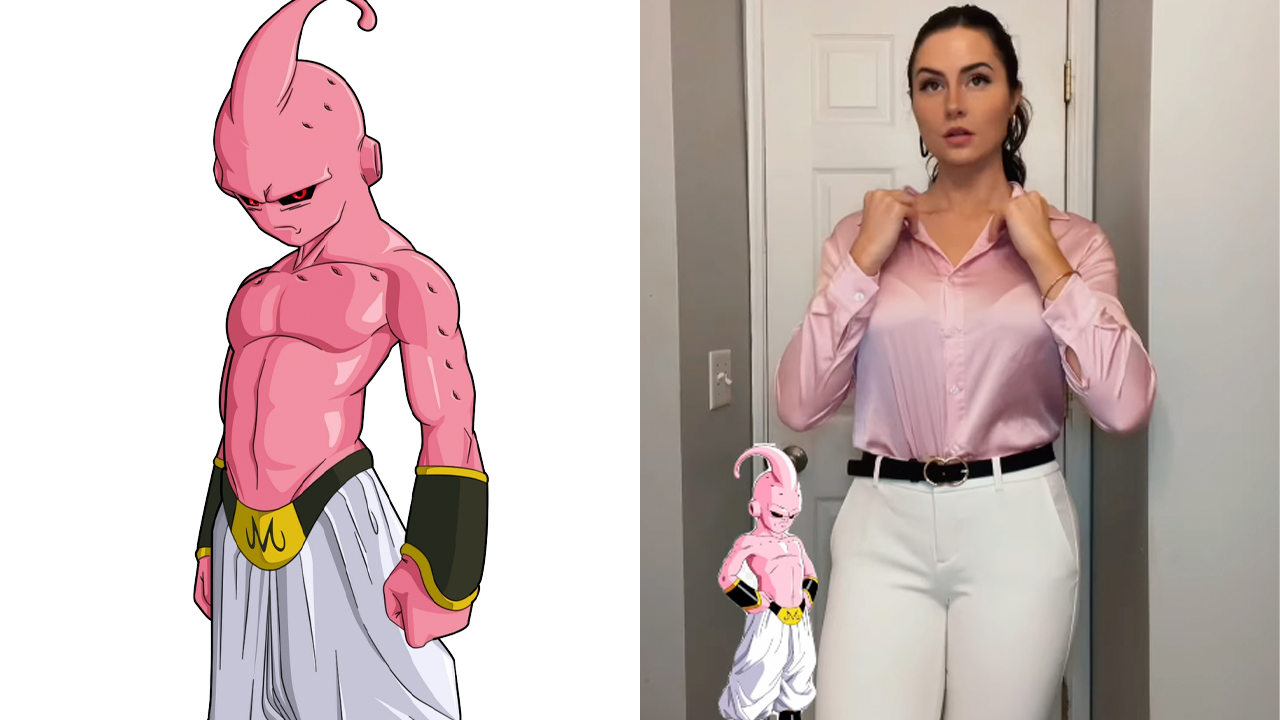 Tal vez Buu sea un ser muy maligno que quiere destruir todo a su paso, pero nadie podría decir que no sabe sacar provecho de su piel rosa al usar unos pantalones blancos. Lo mismo hizo la internauta con este atuendo para cuando es momento de tener el espíritu de Buu.