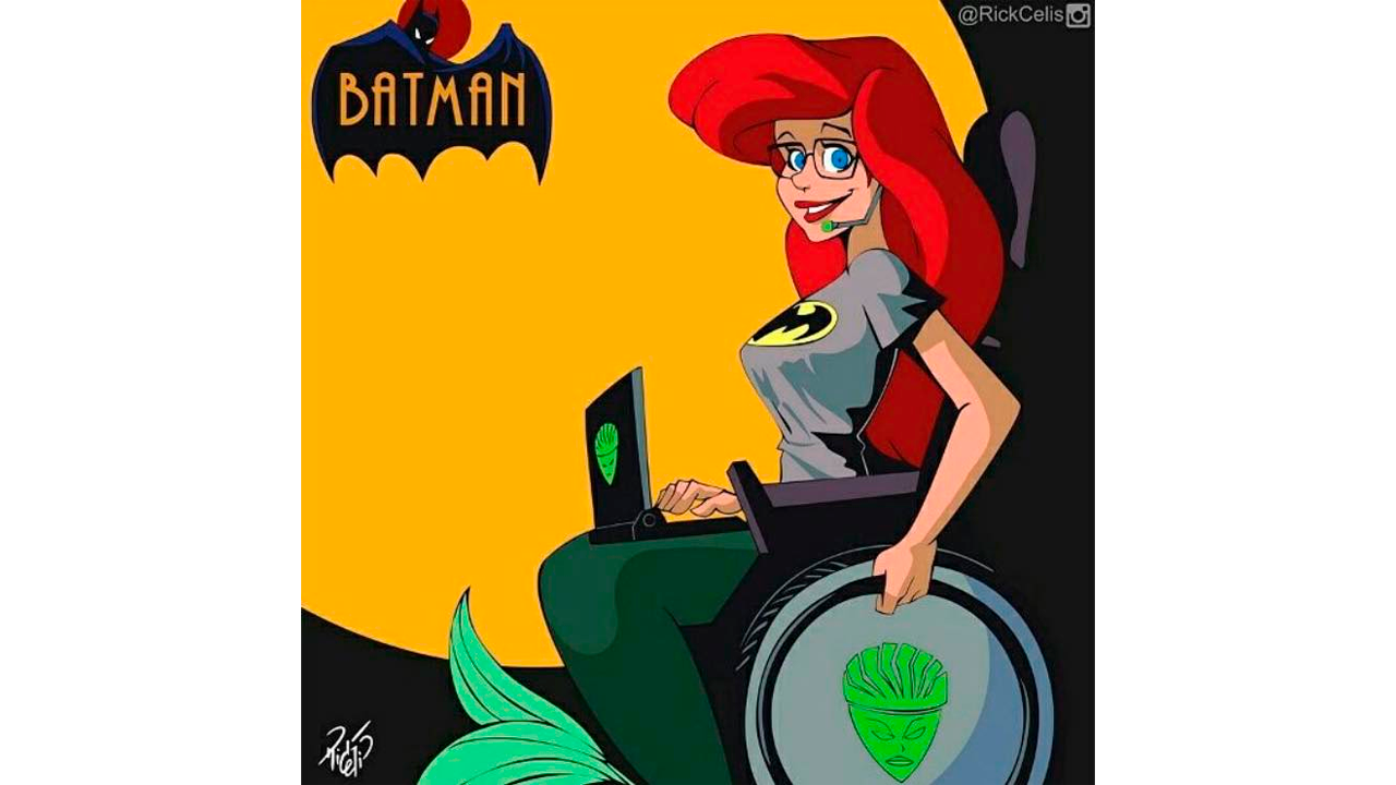 Ariel, la princesa del óceano y más tarde reina en la tierra en La sirenita se convertiría en una aliada de Batman en Ciudad Gótica. Dentro del universo de DC cómics Bárbara Gordon es la hija del comisionado quien se convierte en una pieza clave del equipo como una asesora técnica experta en informática y corredora de información mejor conocida como Oráculo.