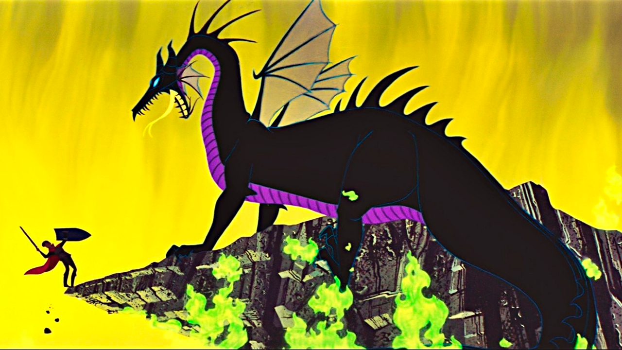 Uno de los dragones más clásicos del cine es la transformación última de Maléfica en La bella durmiente propiciada por llamas color esmeralda que cubren su forma humana y nos permiten conocer a un dragón de contrastantes colores violeta y verde. Podrá pasar el tiempo y la batalla del príncipe contra esta criatura seguirá impresa en nuestra mente como una de las más intensas en las cintas de princesas de la época clásica de Disney.