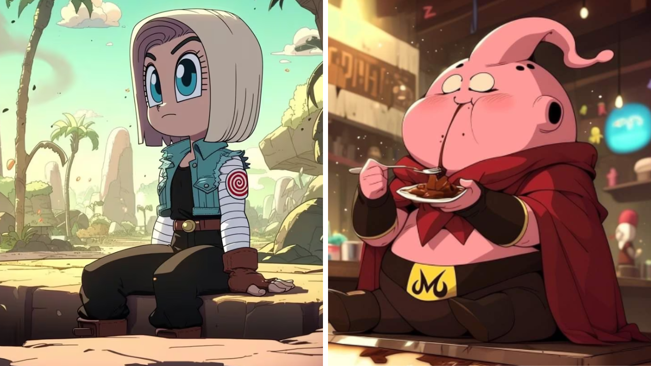 Al adaptar a Número 18 y Majin Buu al estilo característico de Cartoon Network, nos encontraríamos con una Número 18 menos fría y más expresiva, y un Majin Buu incluso más colorido y extravagante. Estos cambios destacarían la transformación de personajes serios a figuras que podrían aparecer en series como El laboratorio de Dexter, donde el diseño único y la personalidad vibrante son clave.