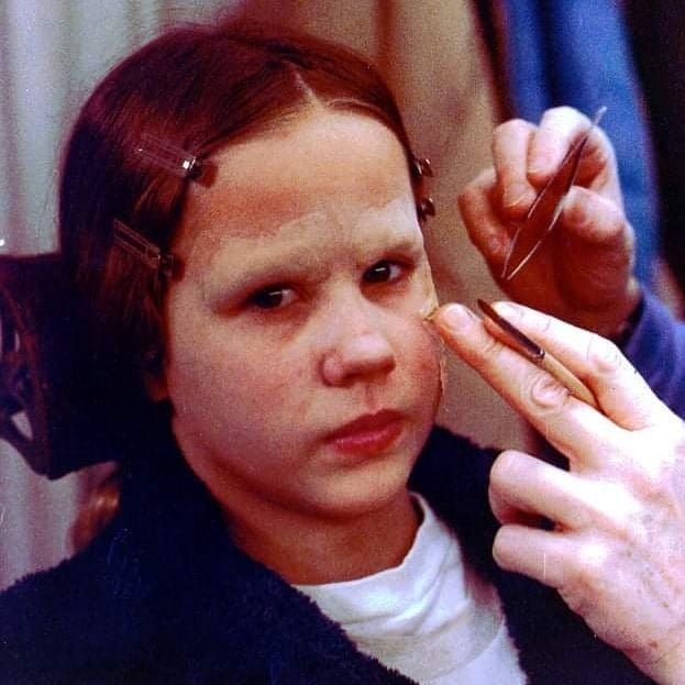 La supervisión de maquillaje corrió a cargo del artista Dick Smith, a quien le tomó entre 3 o 4 horas tener lista a la espeluznante joven poseída por el demonio.