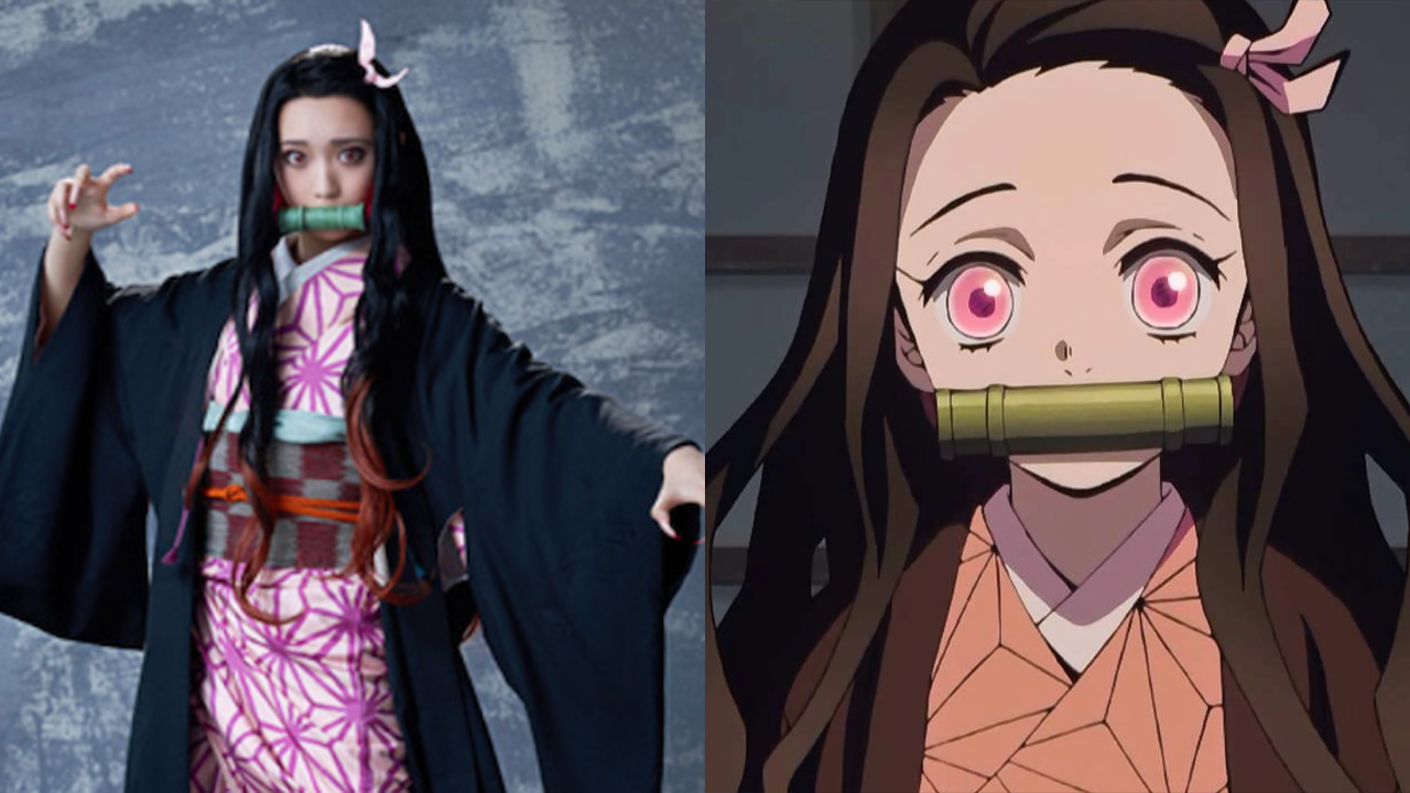 Karen Takahashi interpreta a la hermana menor de Tanjiro, Nezuko Kamado. La actriz hizo todo lo posible por parecerse a Nezuko, e incluso, se puso un par de lentes de contacto de color rosado para emular al cien por ciento al personaje de Demon Slayer.