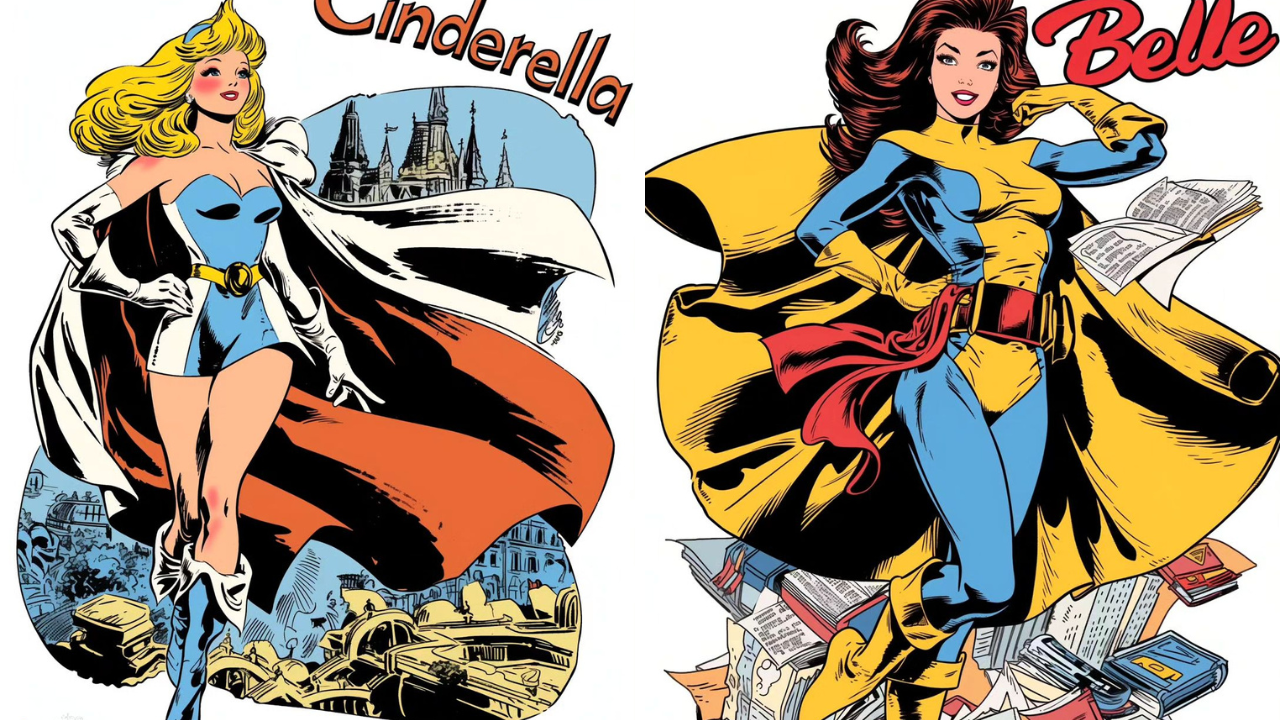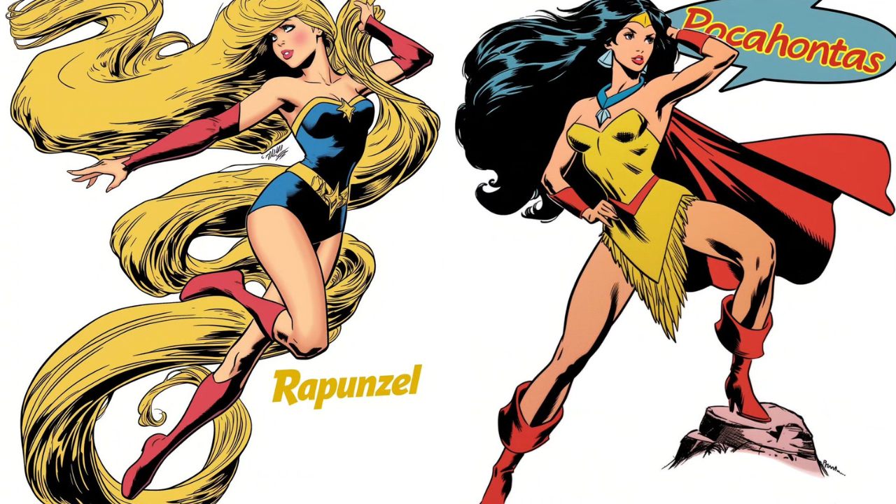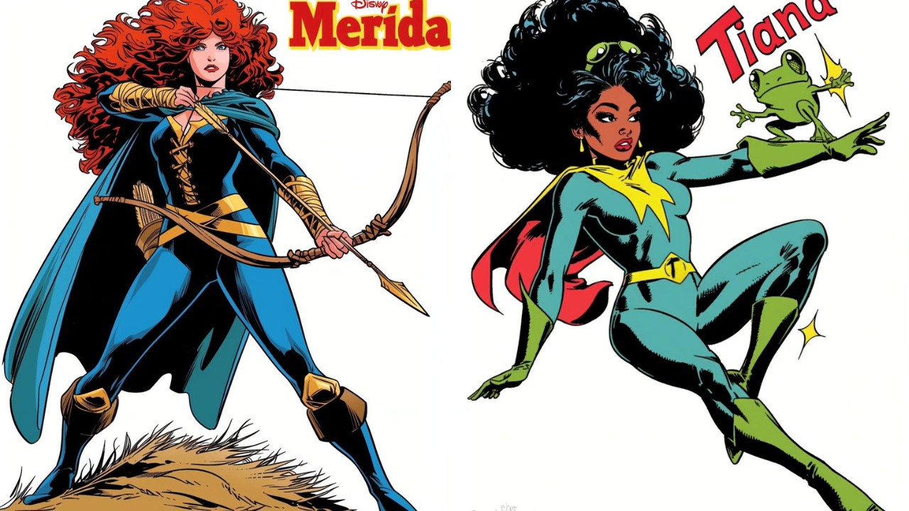 Imaginemos ahora a estas queridas princesas adquiriendo un semblante más guerrero en el universo de los cómics de Marvel. Transformadas en superheroínas, sus elegantes vestidos darían paso a trajes de combate estilizados, armaduras y capas llenas de detalles icónicos, listos para la acción. Estos personajes, al unirse a conocidos superhéroes como los Vengadores y los X-Men, no solo mantendrían su esencia de valentía y compasión, sino que también añadirían habilidades sobrenaturales y una destreza inigualable en combate.