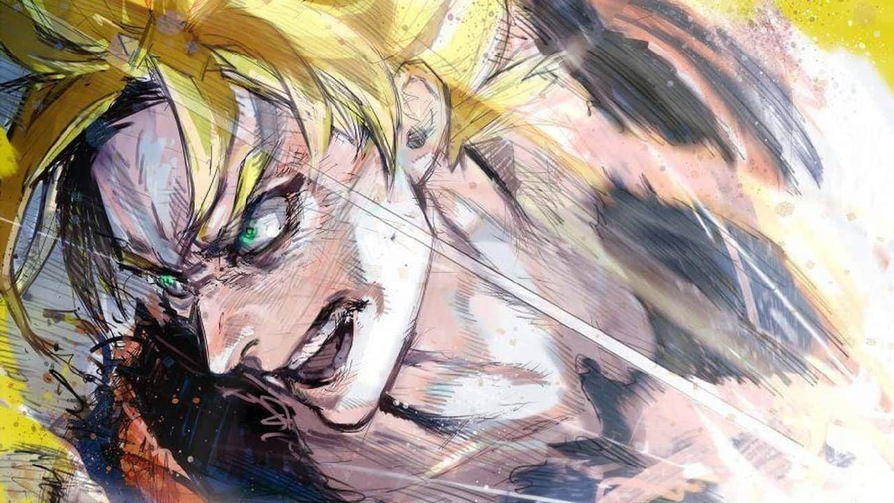 Los retratos crudos de Sui Ishida en Tokyo Ghoul permitieron tener este retrato de Goku super saiyajin ejecutando un kamehameha como si fuera a destruir a un malnacido Ghoul.