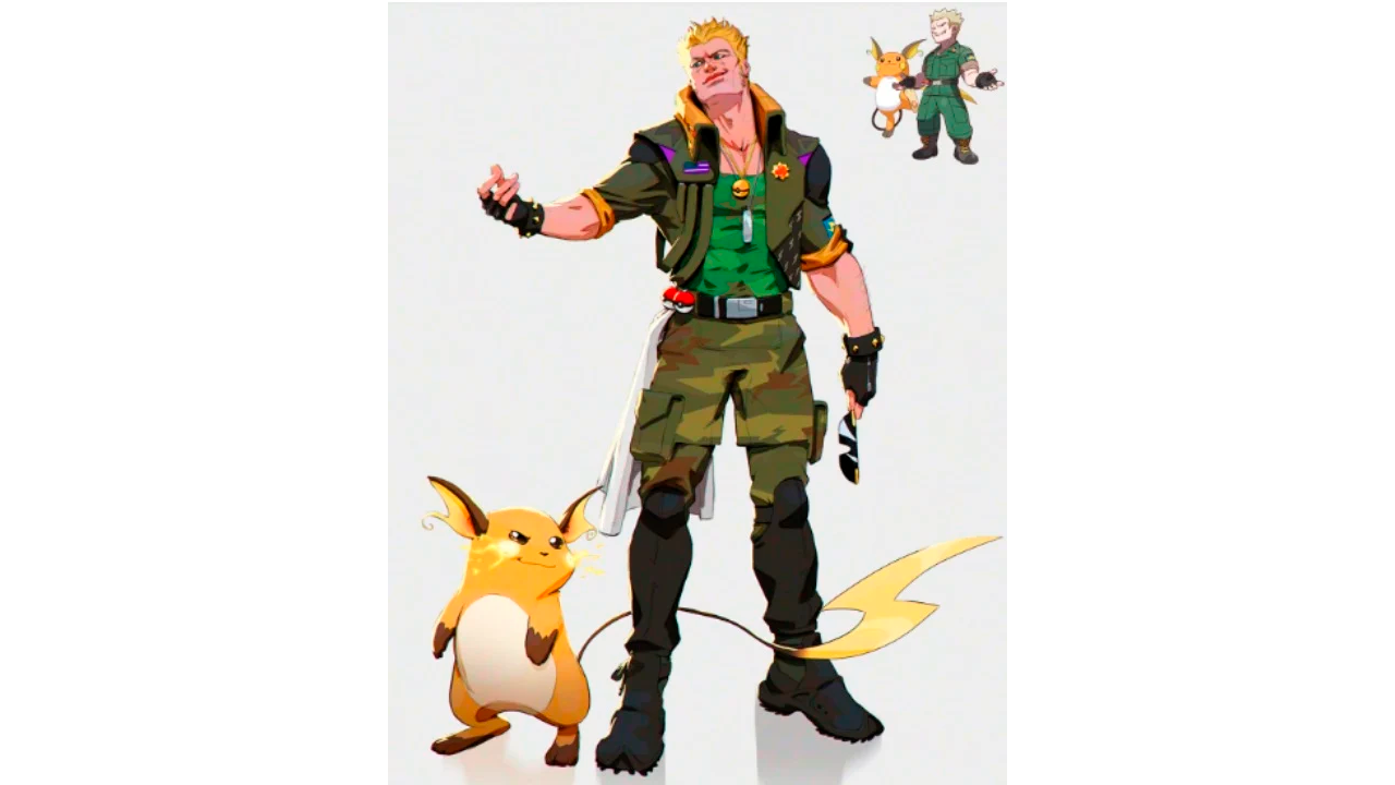 También conocido como el rayo americano, el Teniente Surge apareció en las últimas generaciones de la serie. Es el líder del Gimnasio Pokémon de Ciudad Carmín y ya que se especializa en los monstruos de tipo eléctrico, lo acompaña un Raichu.