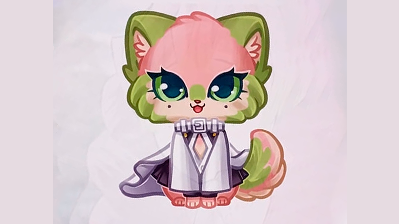 Otro de los personajes favoritos, y a decir verdad uno de los más fuertes, es sin duda Mitsuri Kanroji. Para su versión felina, la Pilar del Amor conservaría su pelaje color rosa con las puntas en destellos verdes y su haori, tan único como ella luce más que adorable. Si tan sólo su presencia humana es suficiente para que todos mueran de amor al verla, no hay manera en que alguien se resista a su apariencia en forma de gatito.