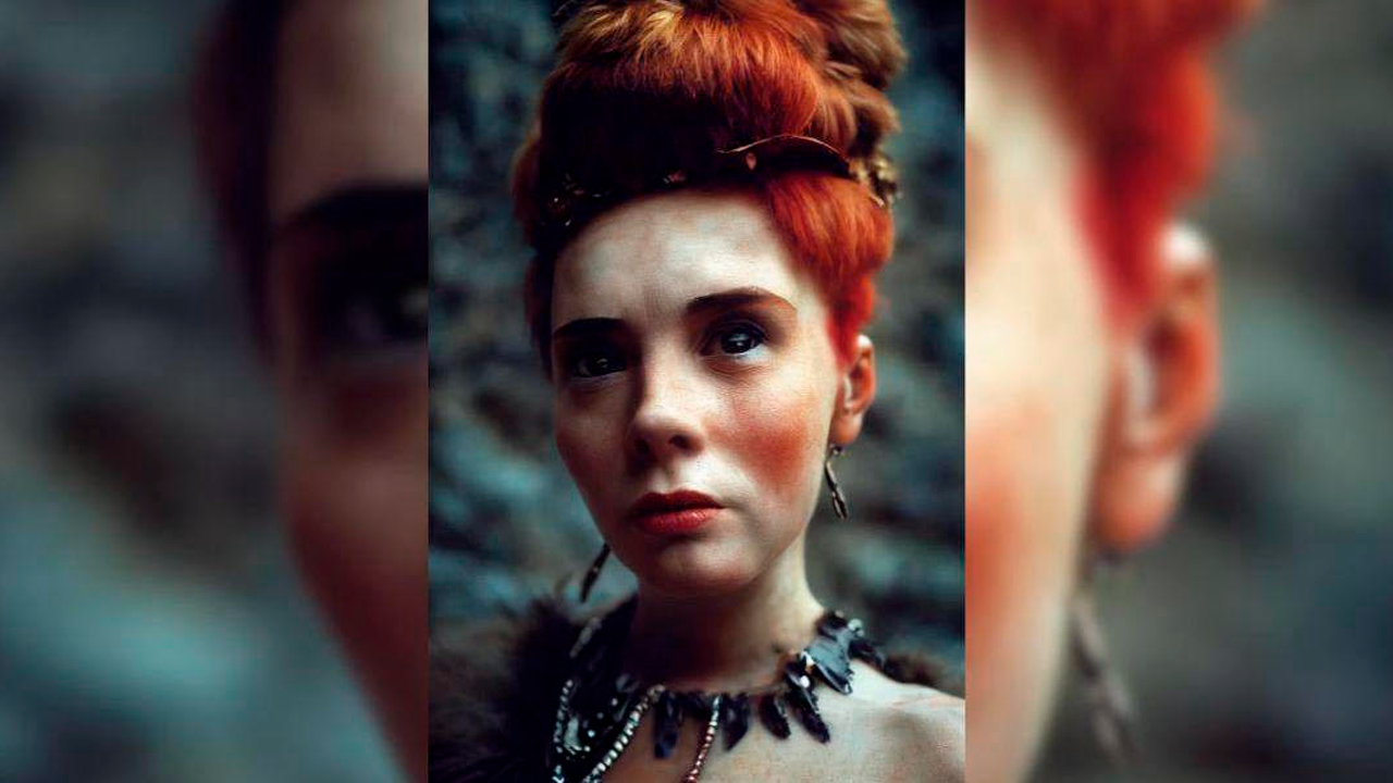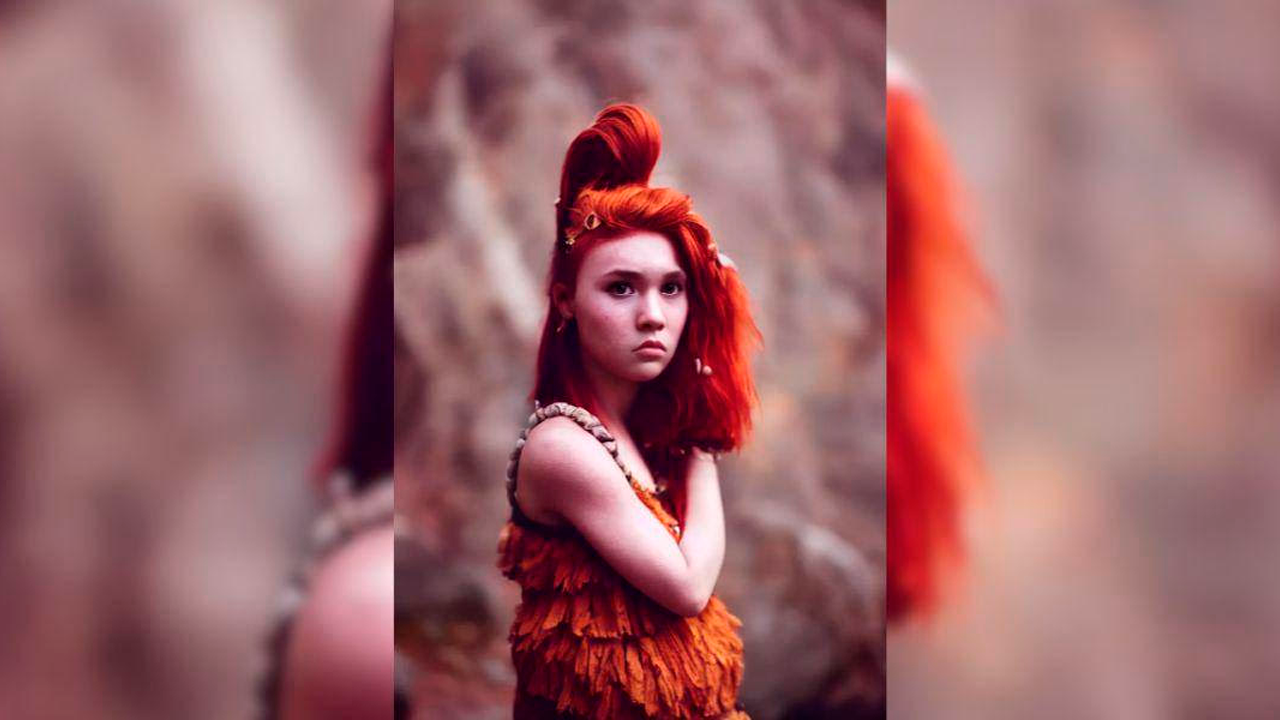 Cabello pelirrojo completamente recogido en un peinado alto y un collar adornando su cuello, sin duda alguna se trata de Vilma Picapiedra. Ahora agrega un par de pendientes a cada lado de su cara para complementar sus accesorios.