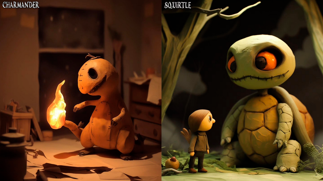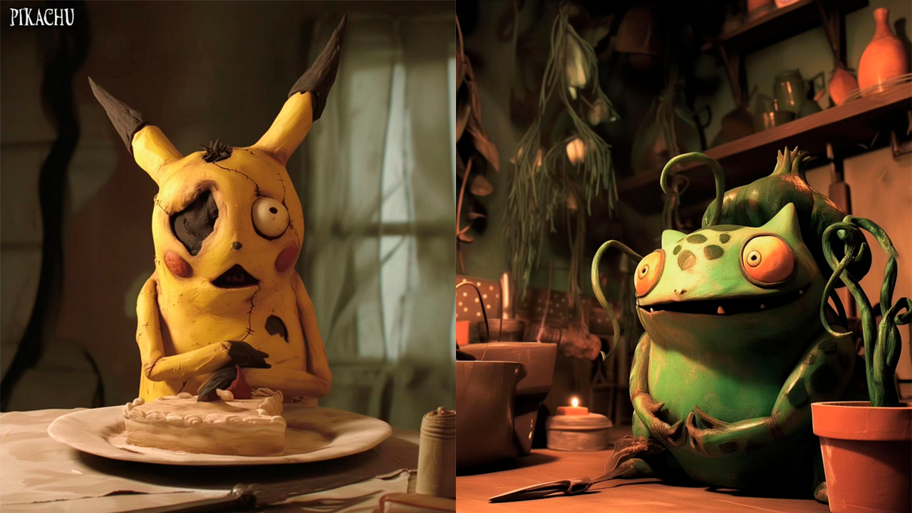 Como una prueba más de que la cultura del entretenimiento puede combinarse en un sinfín de formas, un fan de los monstruos de bolsillo realizó un experimento con la ayuda de una IA para sacar a Pikachu, Charmander, Squirtle y muchos más de sus batallas épicas en los Torneos al mundo oscuro de Burton. Para estas imágenes, al igual que sucedió con las princesas Disney, los personajes del anime cambiaron sus colores vibrantes y aura amigable por una un poco más sombría y detallada al estilo stop-motion de El cadáver de la novia. Checa estas imágenes que seguramente se quedaran en tu mente.