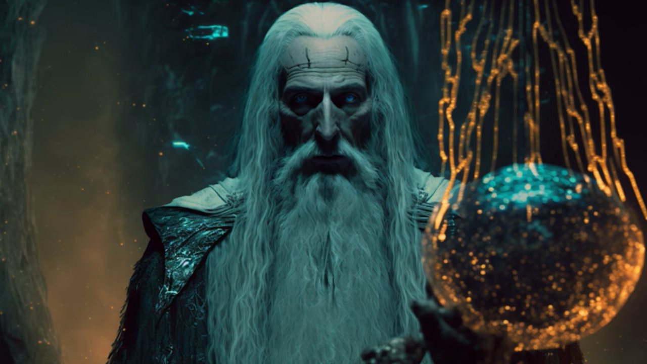 Gandalf (Ian McKellen) pasa de ser un sabio mago a un experto en tecnología alienígena, armado con herramientas científicas y un bastón que ahora es un arma de alta energía. Su papel como protector y guía no cambia, pero su lucha contra las fuerzas del mal se libra en la frialdad del espacio profundo, donde su conocimiento arcano se fusiona con una comprensión de la ciencia que roza lo esotérico.