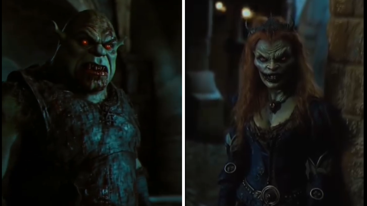 El carismático ogro verde se convierte en una figura terrorífica, con una piel grisácea y cubierta de cicatrices, ojos brillantes que parecen ver a través del alma, y una sonrisa torcida que revela afilados colmillos. Fiona, su inseparable compañera, ya no es la princesa encantada de siempre; su aspecto cambia con la luna llena, revelando una criatura mitad humana y mitad monstruo, con largas garras y un cabello enmarañado, atrapada entre la maldición y la desesperación. Juntos, deambulan por un bosque maldito, cazando a quienes osan entrar en su territorio.