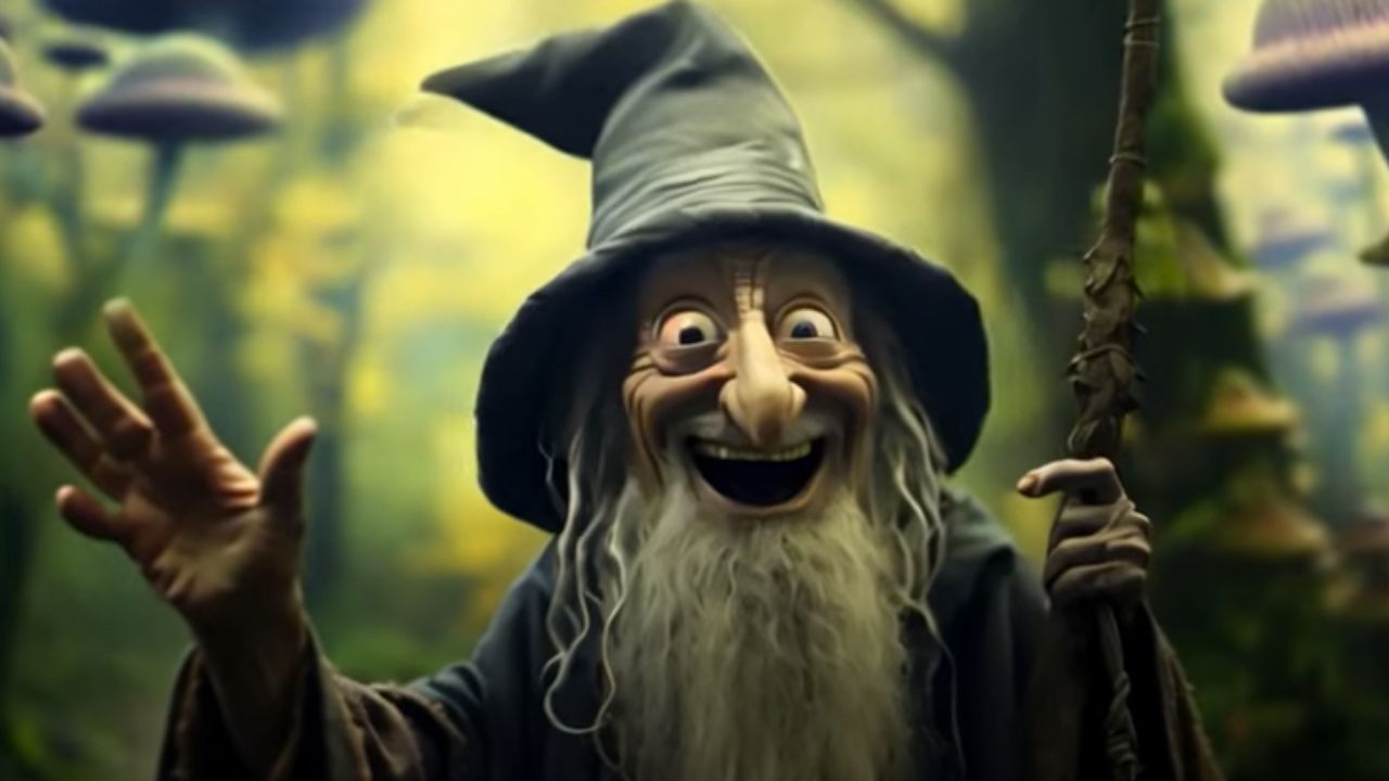 Gandalf el Gris (voz de Christopher Lee, recordado por su papel en El cadáver de la novia) podría ser reimaginado como un enigmático mago con una figura más estilizada y huesuda, encorvado bajo el peso de su sombrero puntiagudo y su largo bastón torcido. Su rostro, surcado de arrugas profundas, reflejaría tanto la sabiduría de sus muchos años como un ligero aire de locura, característica de los personajes ancianos y extravagantes que pueblan el universo burtoniano.