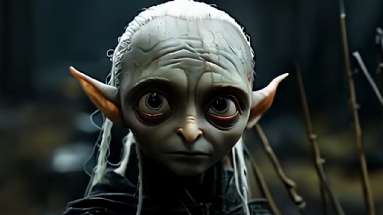 Gollum (voz de Helena Bonham Carter, quien brilló en Sweeney Todd) cobraría vida como una criatura más bizarra y retorcida que nunca, con una figura delgada y huesuda, y ojos desmesuradamente grandes que reflejan una insaciable avidez por el anillo. En las manos de Burton, Gollum no solo sería un ser desgarrado entre dos personalidades, sino también un personaje que se movería con la fluidez extraña y desarticulada de un títere en stop-motion, acentuando su dualidad y su tortuoso pasado.
