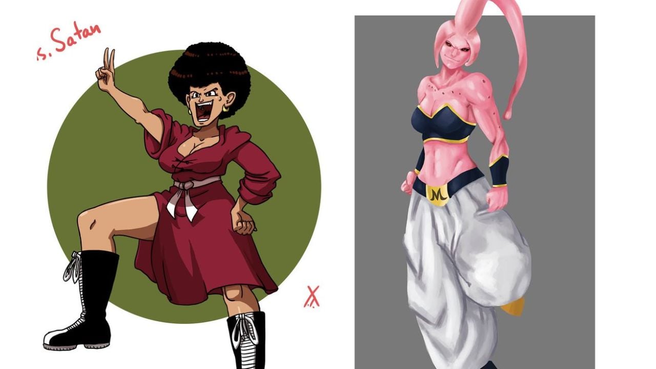 Mr. Satán ahora sería llamada Miss Satán, y seguiría siendo una famosa luchadora y campeona de los torneos (hasta que se presentan los Saiyajin a pelear). Las botas militares y la bata vino no podrían faltar en ella. En cuanto a Buu, la icónica cola que sale de su cabeza formaría parte de su "cabello".