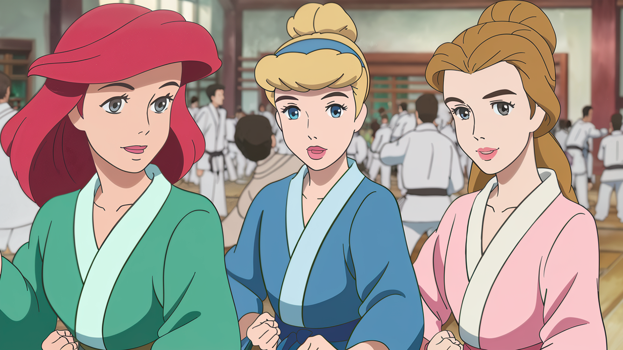 Cambiando sus vestidos por una especie de dobok a juego con sus colores insginia Ariel, Cenicienta y la protagonista de La Bella y la Bestia serían las primeras en estar listas para unirse al entrenamiento. Todas parecen estar en guardia, seguro un consejo de Akane quien debe estar lista para enfrentar a un grupo de pretendientes cada mañana.