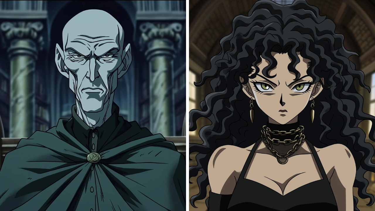 Severus Snape (Alan Rickman) encajaría perfectamente en el mundo de Dragon Ball Daima con una apariencia oscura y misteriosa, envuelto en su característica capa negra, pero con un toque sobrenatural. Sus ataques podrían mezclar pociones y encantamientos que crearían potentes técnicas ofensivas y defensivas, similares a lo que ya mostró en Harry Potter y el Príncipe Mestizo. Draco Malfoy (Tom Felton) podría adoptar el rol del rival arrogante, con un diseño que acentuaría su cabello rubio y su frialdad característica.