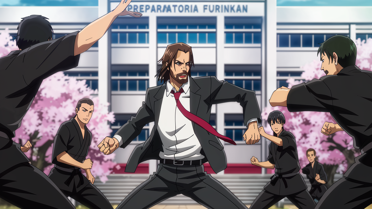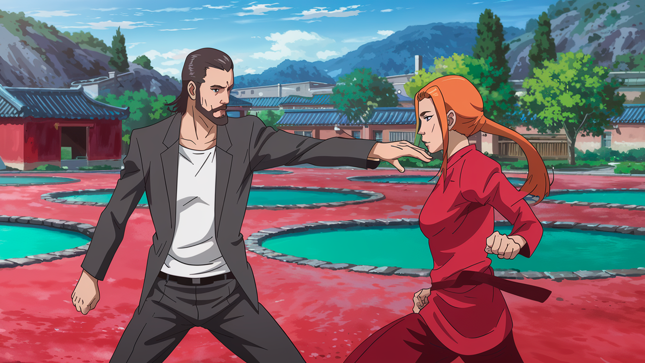 Con este salto del live-action a la animación en puerta es claro que esta franquicia de acción podría aprender mucho de series japonesas maestras en el género de los combates cuerpo a cuerpo. Dragon Ball y Ranma 1/2 son sin duda las producciones en las que el rival de la Alta Mesa podría hacer su debut para aprender muchas cosas de la combinación entre anime y acción, algo que más adelante trasladará a su propia película de origen. En SensaCine Latam, apoyados de una herramienta de inteligencia artificial, obtuvimos estas imágenes de cómo se vería el asesino trajeado en los mundos de Goku, Vegeta, Ranma y Akane aprendiendo del estilo de cada uno y por supuesto enfrentando a varios enemigos nuevos.
