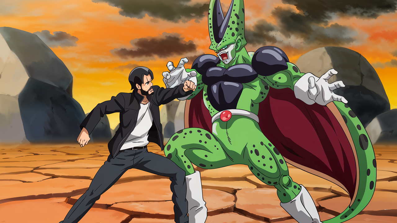 Después de haber entrenado con Goku ¿qué mejor prueba de fuego que enfrentarse a los villanos de Dragon Ball? Lo más impresionante es que John Wick parece estar peleando sin una sola arma contra la Forma Perfecta de Cell.