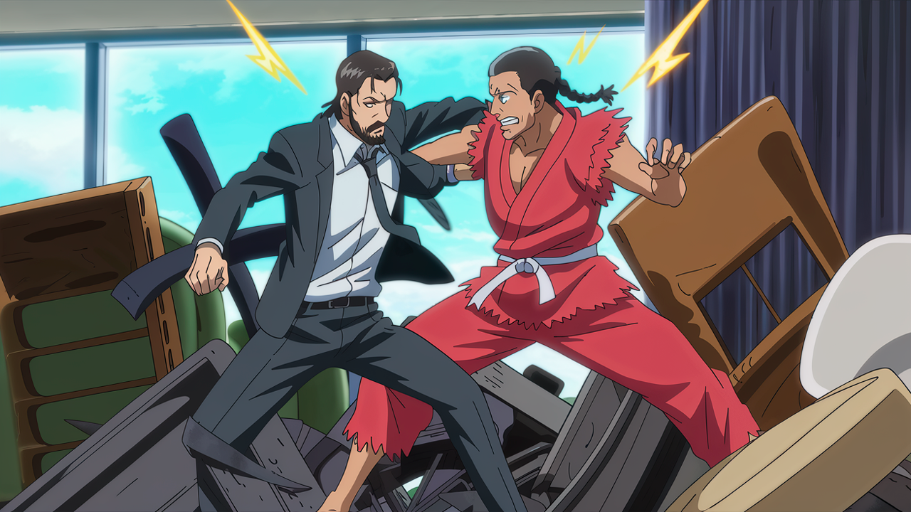 De vuelta en el mundo de Ranma y usando su característico traje negro Wick tendría que demostrar sus habilidades en combate cuerpo a cuerpo ante su primer rival del anime. Vemos que la pelea ha sido tan intensa que la habitación donde se encuentran ya experimentó varios destrozos.