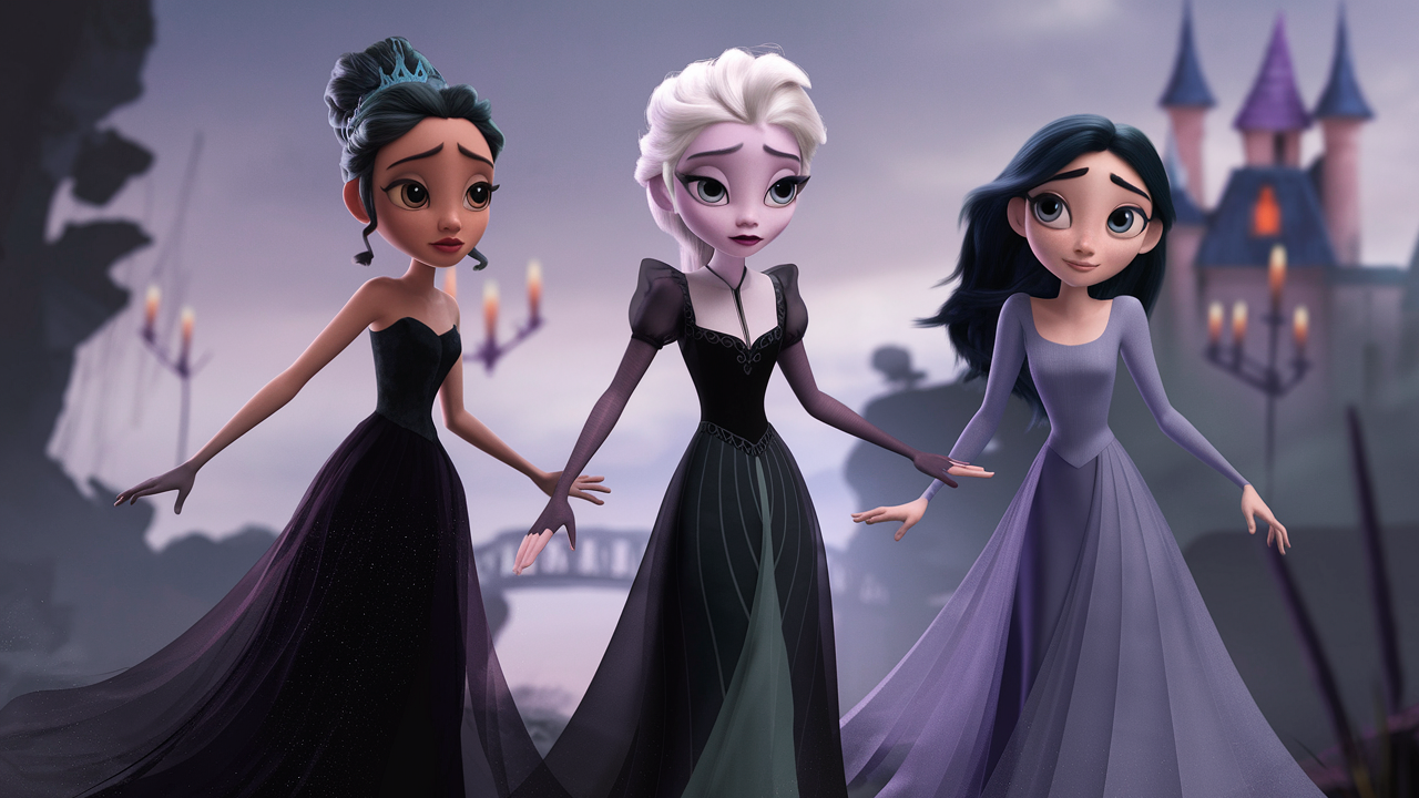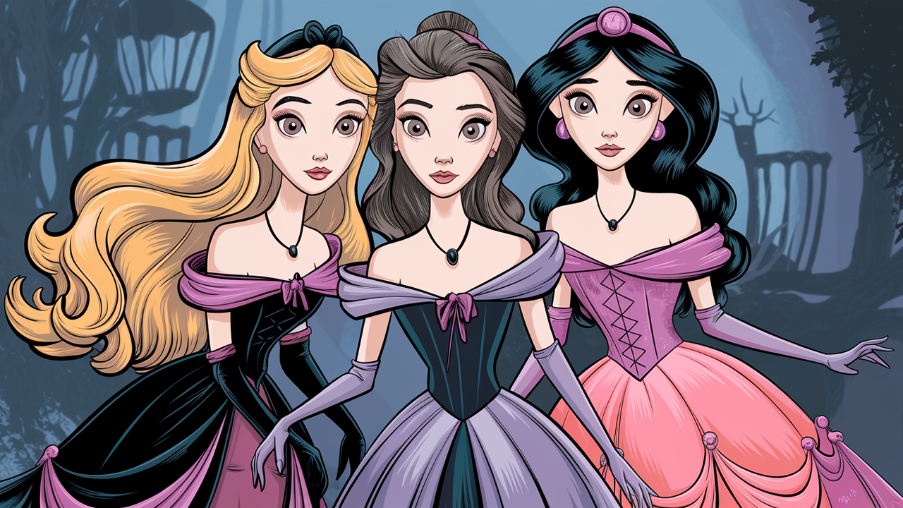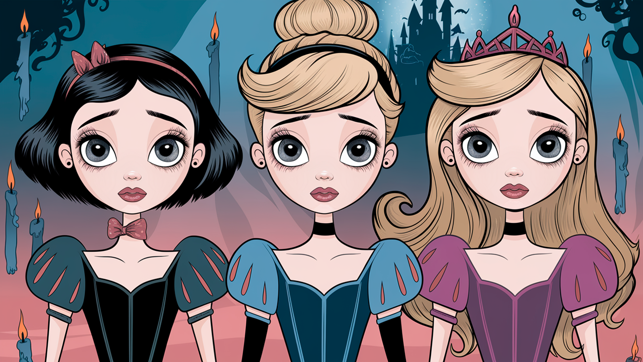 Aunque desde sus orígenes en Disney las princesas han sido presentadas entre el amarillo, rosa y celeste de sus llamativos vestidos, contando sus historias de amor entre el verde vivo de la naturaleza, como La bella durmiente, o aventuras en tierras lejanas, tal como Moana en el vasto océano azul, resulta fascinante imaginarlas en un escenario completamente diferente. ¿Cómo habrían llegado al cine por primera vez si el encargado de contar sus historias fuese Tim Burton?