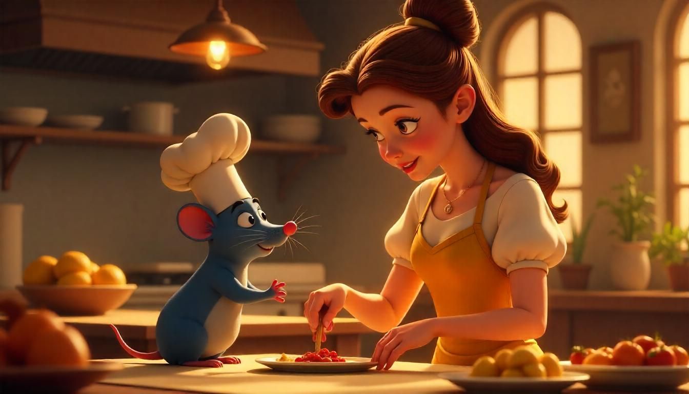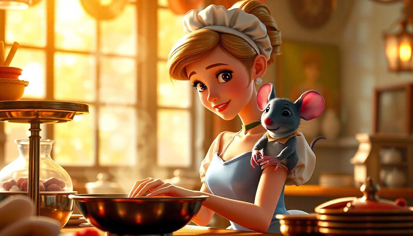 Seguro que Cenicienta sería experta en varios tipos de pastas y justo estaría elaborando una salsa como ninguna otra para bañar un delicioso spaghetti, además contaría con el consejo de Remy en su hombro.
