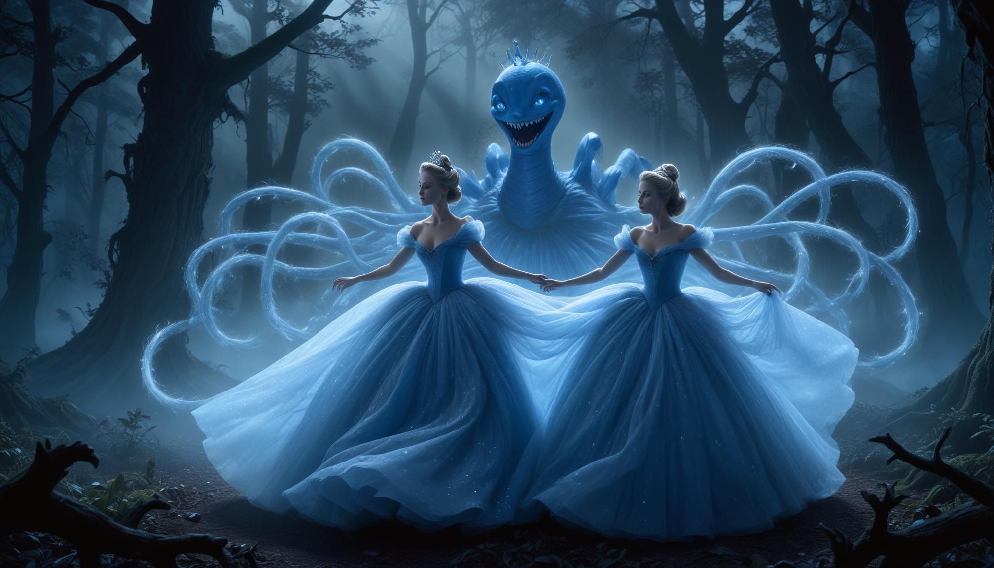 Como si se tratara de hermanas gemelas La Cenicienta se transformaría en una especie de criatura mágica respaldada por un brillante monstruo del bosque tan luminoso como la muerte en Pinocho de Guillermo del Toro.