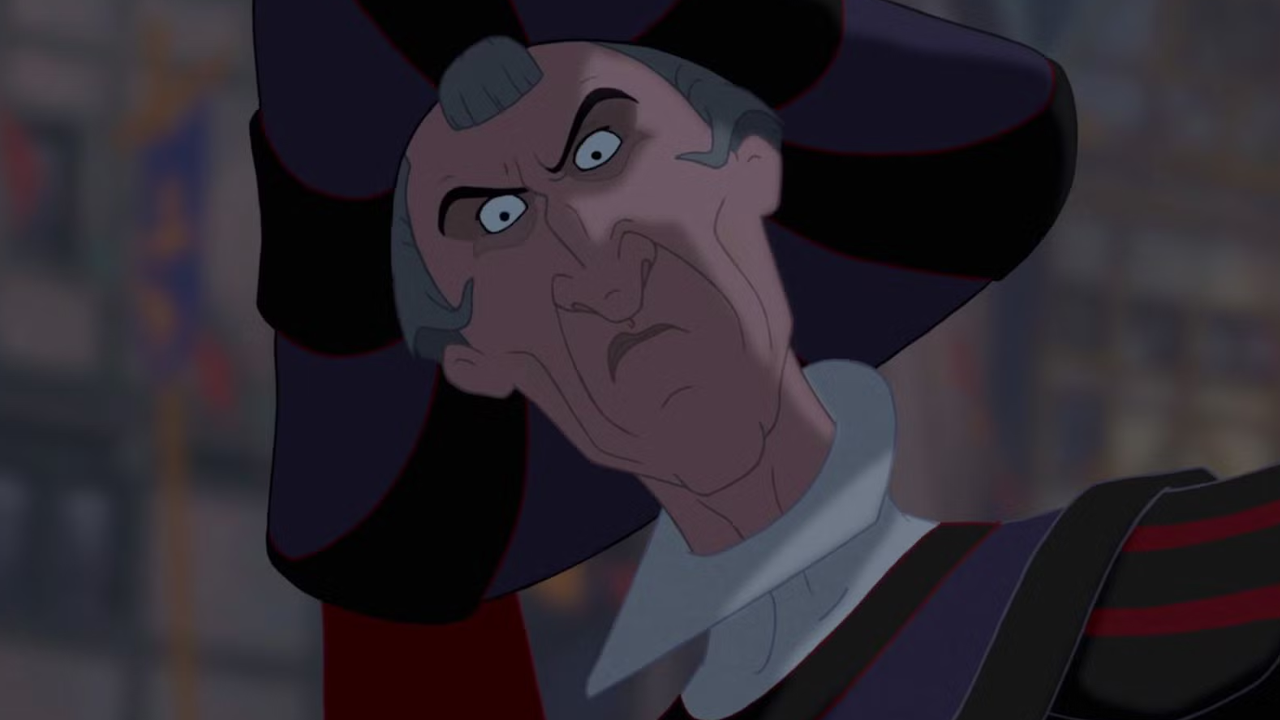 Claude Frollo es la encarnación de todo lo que puede pasar cuando una persona que usa sus creencias como un medio para justificar sus actos atroces, como el genocidio de la población romaní de París. Lo cierto es que en Disney hay villanos tan fríos y reales como Frollo.