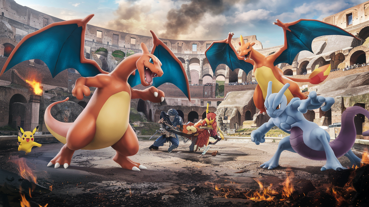 Quienes se sumaron a la fiebre de Gladiador fueron los monstruos de bolsillo. Un fan de Pokémon imaginó cómo hubieran sido los encuentros legendarios en el Coliseo de Roma si en estos hubieran combatido los Pokémon en nombre de sus entrenadores. Charizard, Pikachu y Mewtwo serían algunos de los luchadores más fuertes, quienes dejarían todo su espíritu en la arena.
