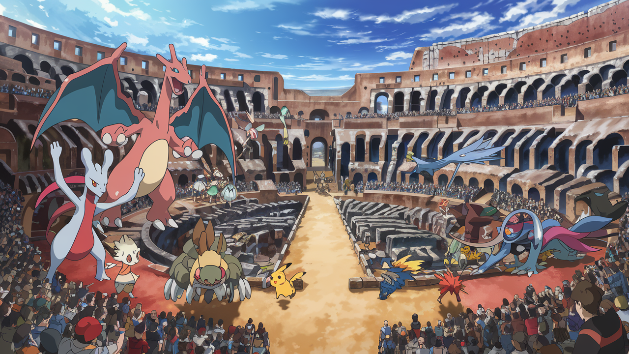 Así como en Gladiador 2, todo el pueblo acude al Coliseo para presenciar las batallas más épicas y peligrosas. Los Pokémon que pelean para entretener al público no son cualquiera, sino criaturas de poderes titánicos. Los libros de Historia dedicarán sus páginas para contar las legendarias batallas que ocurrieron en el Coliseo, donde criaturas de poderes inimaginables mostraban todo su esplendor.