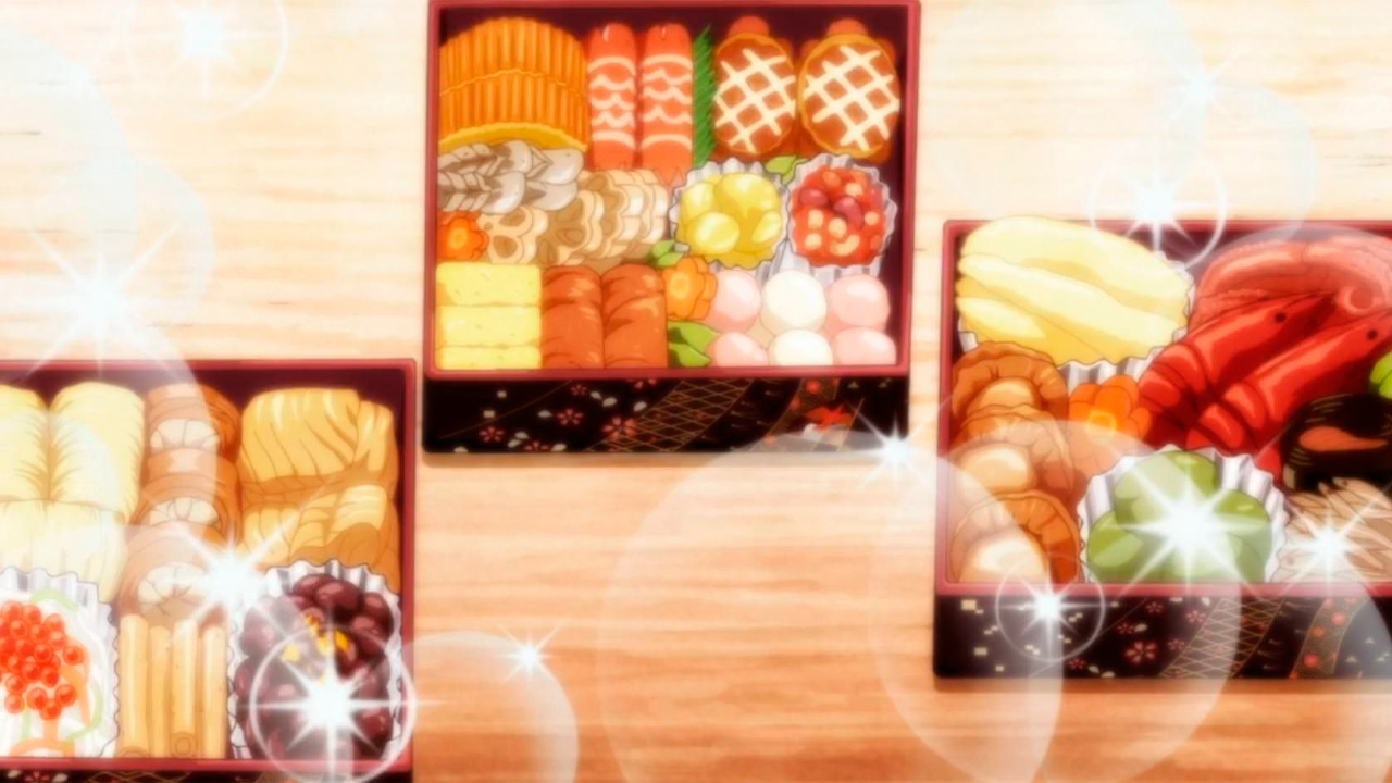 Como ocurre con muchas festividades alrededor del mundo, la comida es una parte esencial de las celebraciones japonesas de Año Nuevo. Para el gran banquete la preparación más notable es el osechi, cajas apilables de comida que contienen cosas como sopa de mizo, fideos o pasteles de pescado.