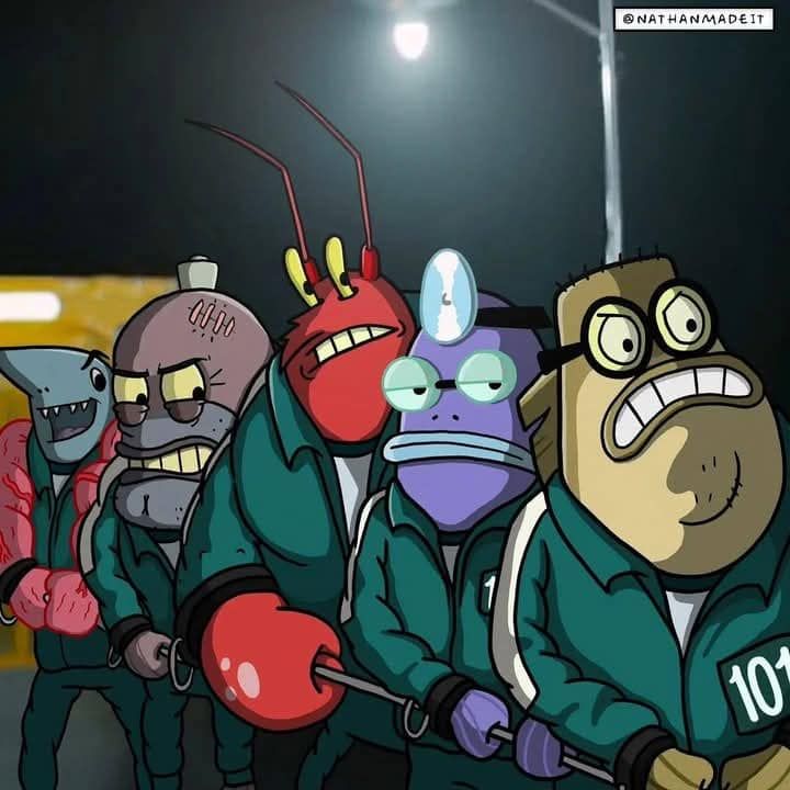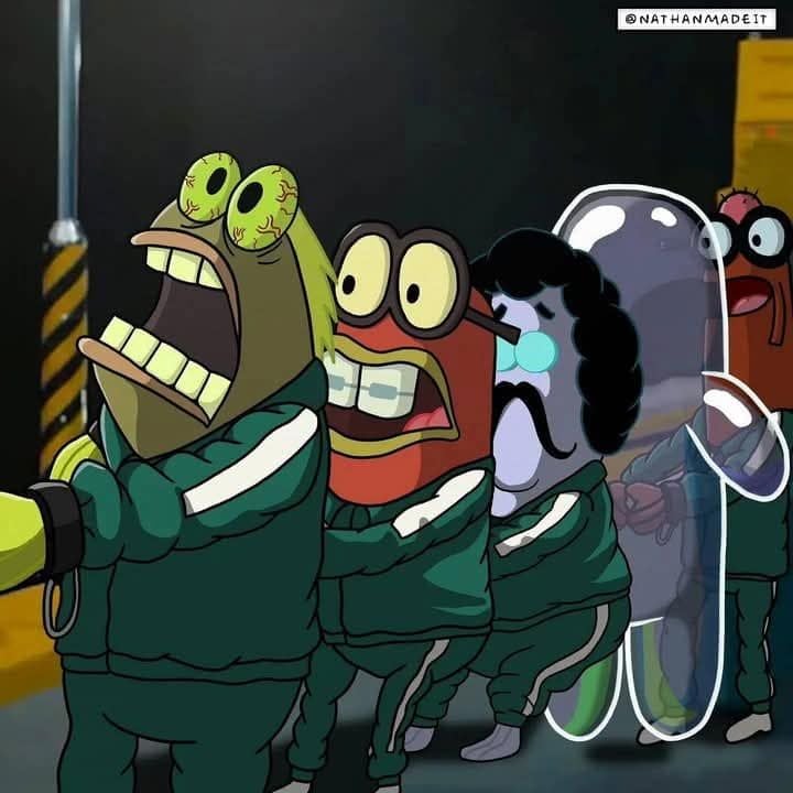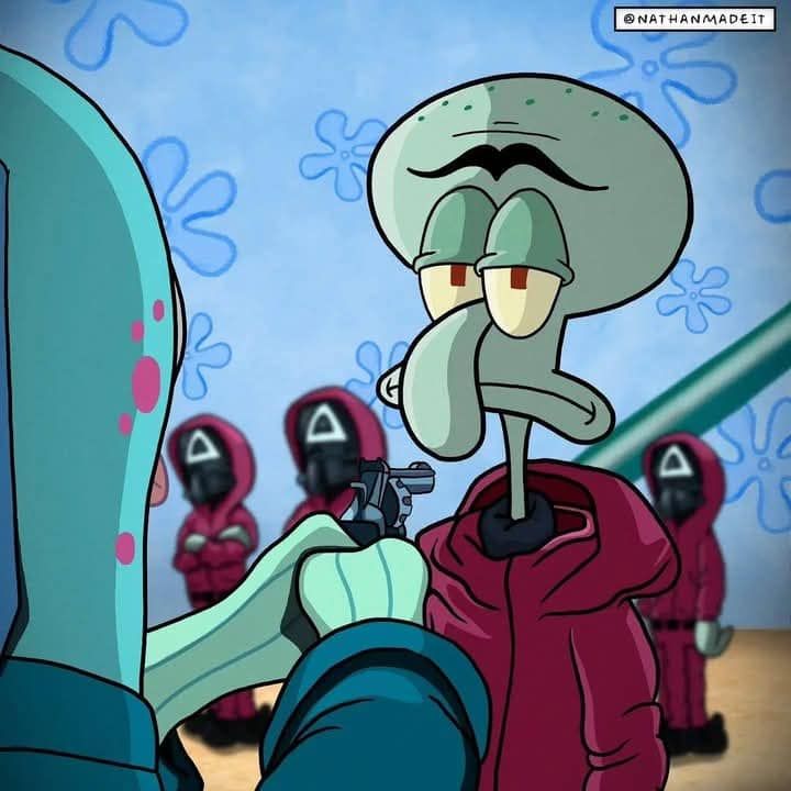 Cuando la popularidad de una serie estalla de forma tan impresionante como lo ha hecho El juego del calamar, es natural que los fanáticos quieran saber cada vez más sobre los protagonistas y sus otros proyectos, se sorprendan por la censura a algunos de los personajes o incluso llamen a actuar sobre distintos temas sociales que se referencian en la serie de Netflix. Pero también comienzan a surgir contenidos inesperados creados por los mismos seguidores de la serie que hacen los crossovers más inesperados como el caso de @nathanmadeit, un ilustrador a quien se le ocurrió fusionar el alegre mundo de Bob Esponja con el oscuro universo de El juego del calamar.
