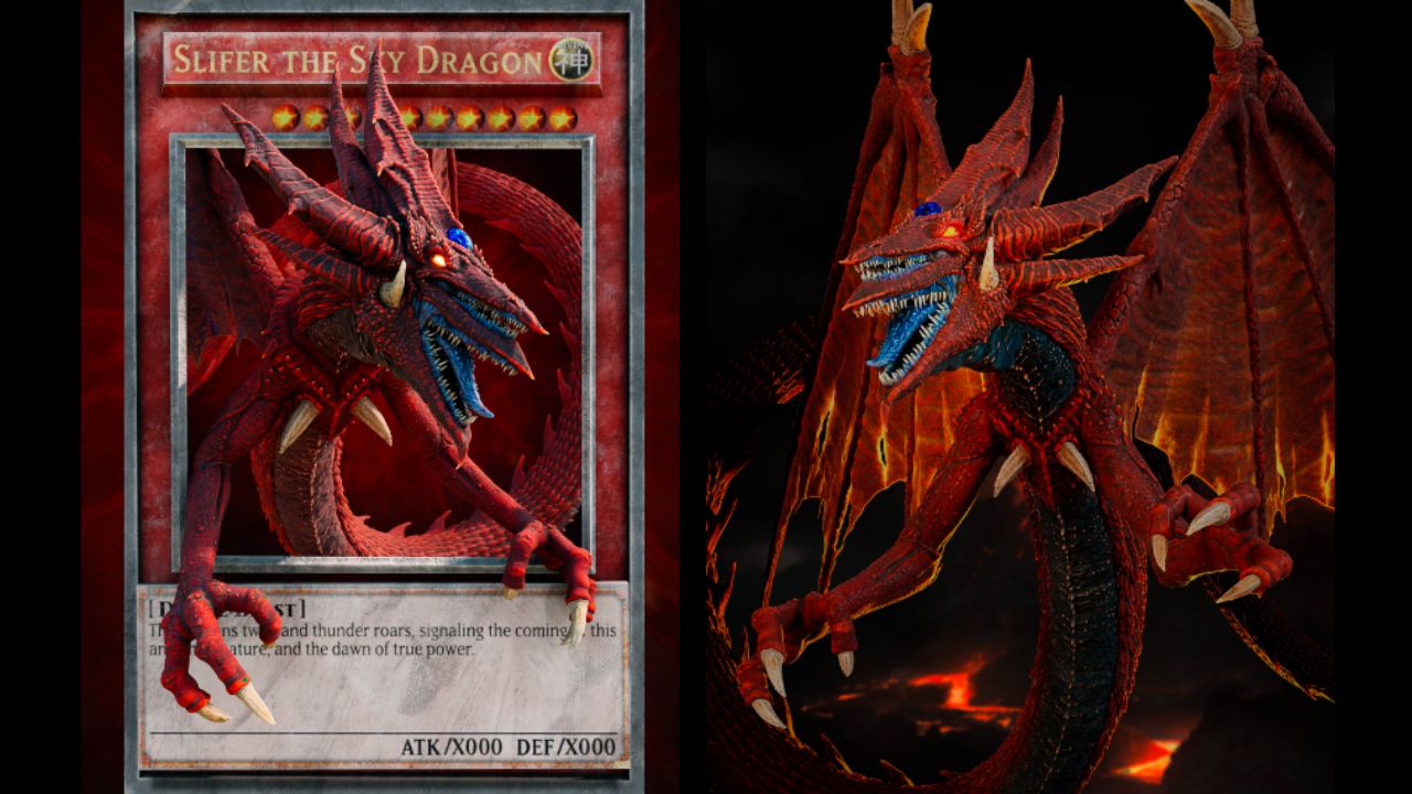 Su cuerpo serpentino y sus dos bocas lo convierten en un ser aterrador y majestuoso. En un live-action, Slifer podría moverse con mucha fluidez por el cielo, con efectos de partículas que simulen su energía roja recorriendo su cuerpo. Cada rugido haría retumbar el aire y sus colmillos afilados serían una amenaza constante.