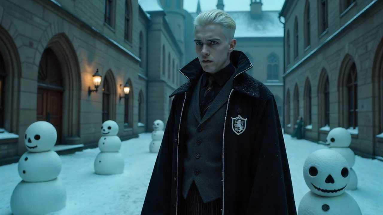 Draco Malfoy encajaría perfectamente en el mundo de Tim Burton. En esta versión, lo veríamos a través de un paisaje lleno de nieve, portando una capa oscura para dar un aire de arrogancia en su rostro pálido. Su expresión sería la de alguien que sabe que pertenece a la elite mágica y su cabello rubio platino le daría un aspecto espectral.
