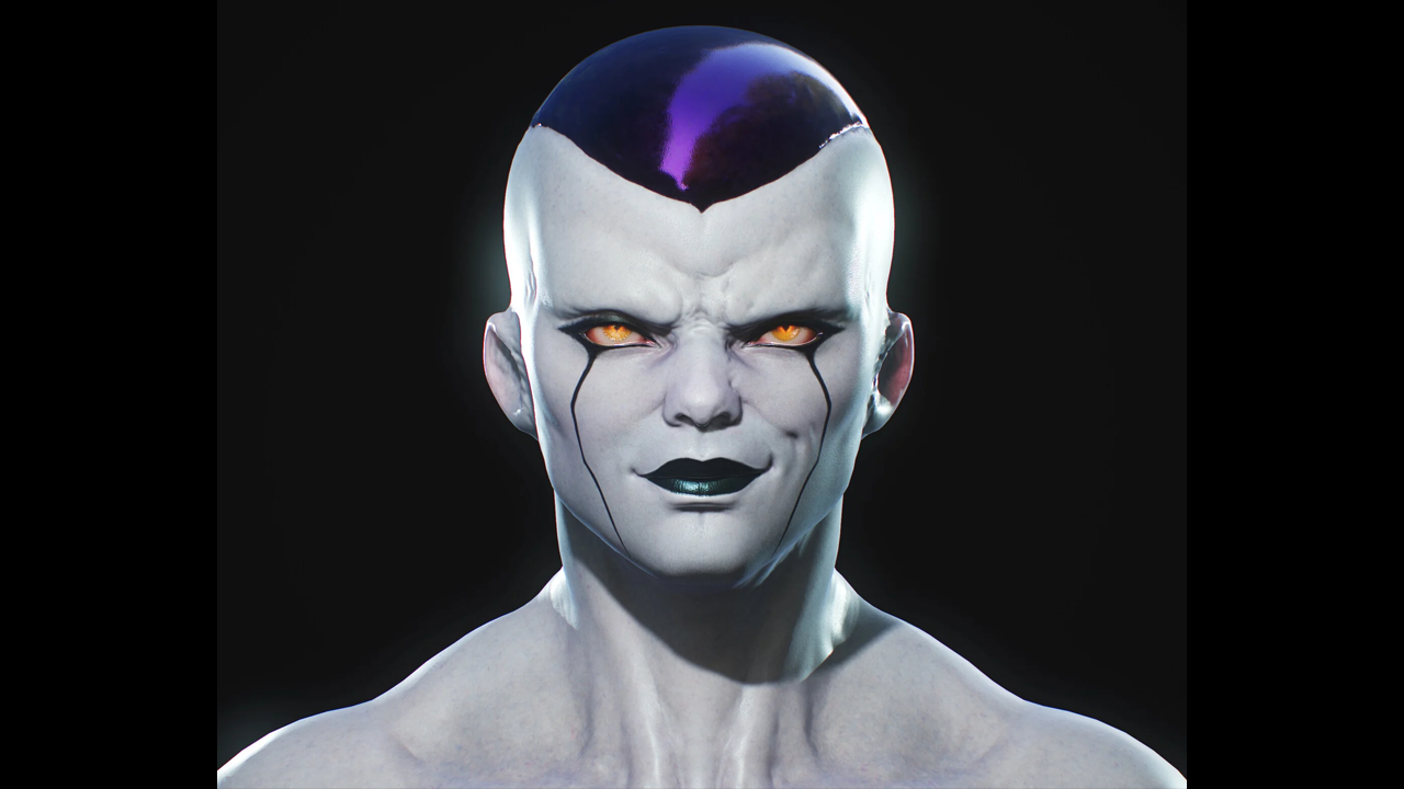 La versión final de Freezer es icónica y, en un live-action, podría inspirarse en los diseños de villanos de ciencia ficción como los ingenieros de Prometeo. Su piel blanca podría tener un acabado perlado, con reflejos de luz que le den un aspecto más realista, mientras que sus placas moradas serían de un material similar al cristal.