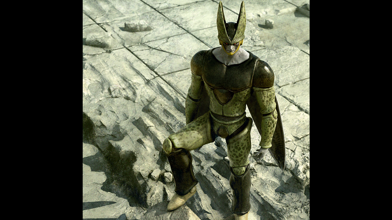 Si hay un personaje que sería todo un reto en CGI, ese sería Cell. Su exoesqueleto de insecto tendría que tener un nivel de detalle impresionante, con una mezcla de texturas entre lo biológico y lo metálico. Su forma perfecta podría asemejarse a un depredador alienígena con una postura intimidante.