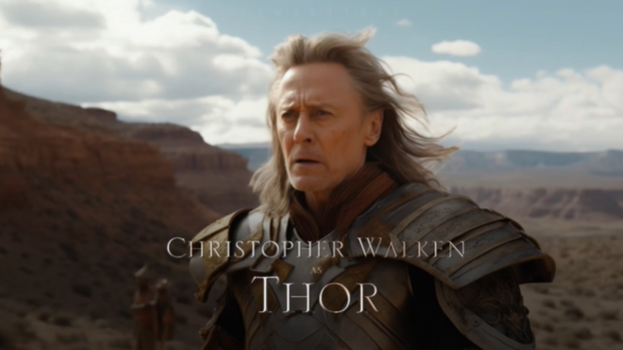 El dios del trueno en esta versión tendría un aura inquietante gracias a Christopher Walken. Con su mirada penetrante y tono de voz inconfundible, su Thor parecería más un enigmático dios nórdico salido de una leyenda oscura, empuñando un Mjölnir cubierto de runas ancestrales.