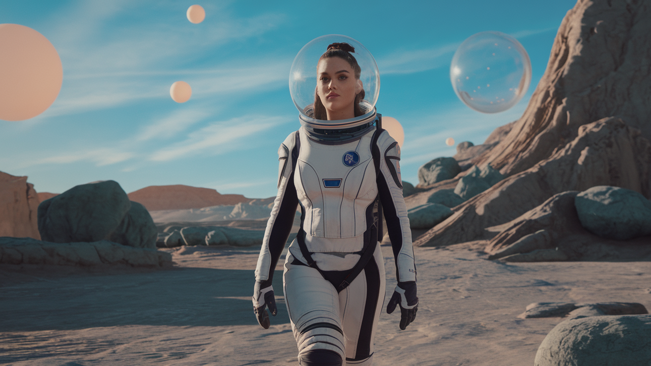 Katy habría descendido lentamente sobre un planeta misterioso, con paisajes rocosos y cielos que parecen salidos de Duna. Ella portaría un traje espacial elegante, con detalles futuristas y su logotipo en el pecho. Con cada paso, suena una versión instrumental de "E.T.", y mientras se pregunta si alguna criatura alienígena podría ser su próximo fan.