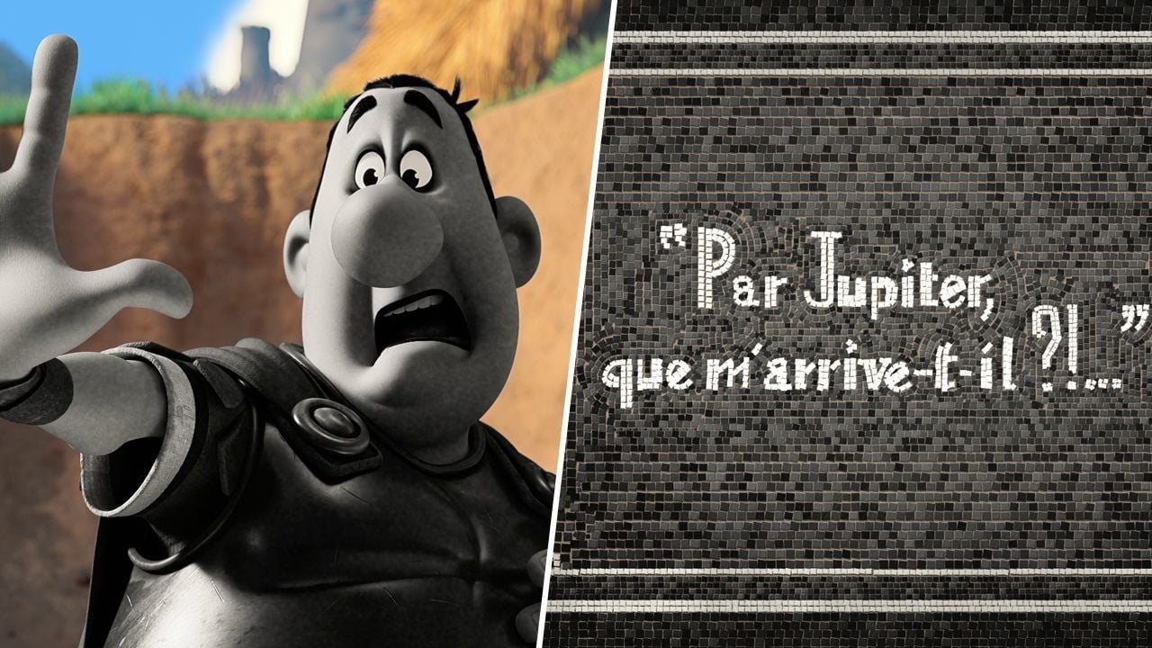 Utilizado como catador de las mezclas preparadas por Panoramix, el centurión Potus pasa por todos los estados y todos los colores. En esta secuencia, hay uno en particular con un pasaje en blanco y negro con una línea de "mosaico" que recuerda la gran época del cine mudo.