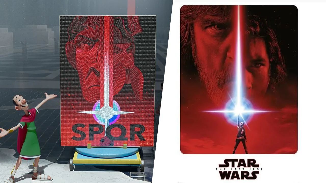 Cuando el director de marketing de Julio César revela su nuevo poster al líder romano, este descubre un mosaico negro, rojo y azul. ¿Lo mejor? Está inspirado en la imagen de Star Wars - Episodio VIII: Los últimos Jedi, con él mismo como Luke Skywalker y Vercingetorix como Kylo Ren.