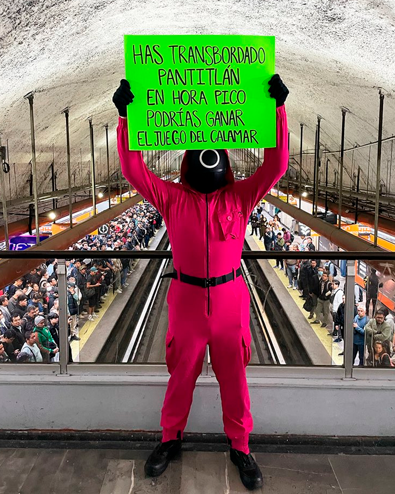 Bien dicen que la Ciudad de México está a una hora de la Ciudad de México especialmente en la hora pico, momento en que ganar un asiento -o al menos un espacio en el vagón del metro- se vuelve un completo juego de adversidad. Para quien es experto transbordando en el metro y especialmente en la estación Pantitlán en hora pico: "podrías ganar El juego del calamar".